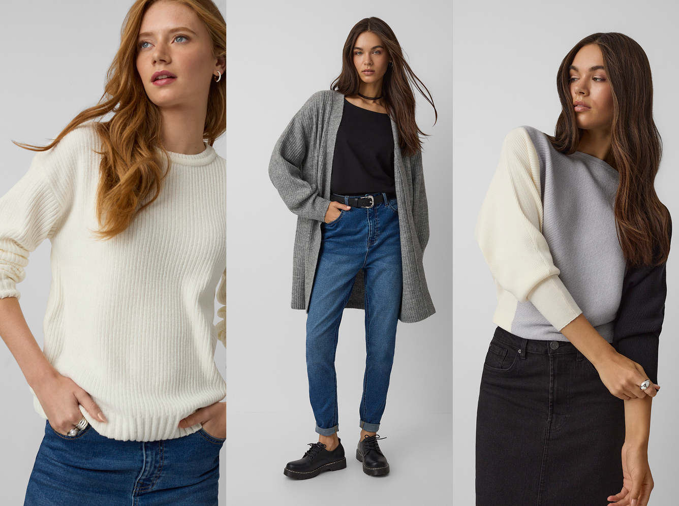Jednobojne odjevne kombinacije opet su u igri! U Pepcu ćete pronaći moderne pletene komplete u zagasitim bojama, koji se jednostavno kombiniraju s raznim gornjim i donjim dijelovima – smeđe, tamno plave boje ili kombinacije tih boja. Posegnite za udobnim majicama dugih rukava koje će se odlično uklopiti ispod sakoa ili kao glavni komad odjevne kombinacije. Zajedno s klasičnim hlačama, šarenim šalom ili ukrasnim remenom, osvojit će srca svih ljubitelja jednostavnosti.