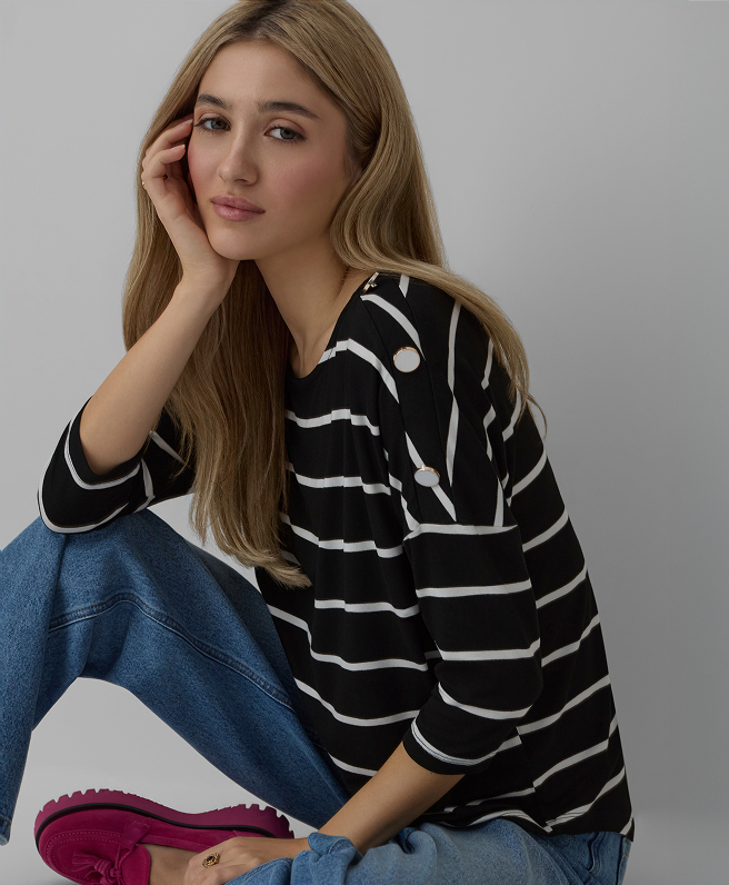U novoj kolekciji čekaju vas i elegantne košulje i puloveri ukrašeni šik prugama koje nikad ne izlaze iz mode. Hoćete li odabrati klasičan pulover ili vestu širokog kroja s dekorativnim gumbima? Što god odabrali – nećete pogriješiti! Inspirirajte se i stvorite savršen komplet koji će najbolje naglasiti vaš osobni stil.
