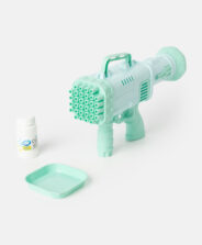 Zeleni aparat za puhanje mjehurića ima 32 rupice koje vam omogućuju stvaranje tisuće prekrasnih mjehurića jednim klikom na gumb. Pištolj je lagan, ergonomičan i savršen za igru u parku, vrtu ili za vrijeme obiteljskih okupljanja na otvorenom. U komplet su uključeni i posudica za tekućinu za mjehuriće i dodatna tekućina za mjehuriće.