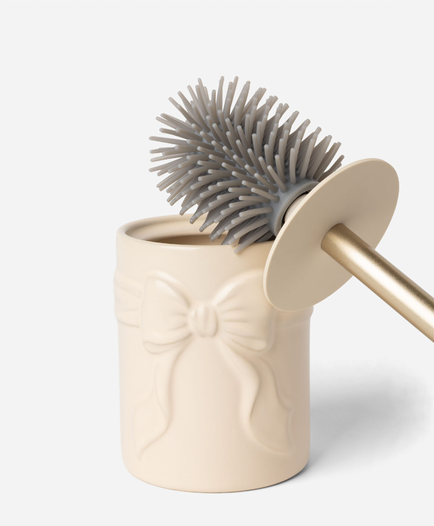 Četka za WC s mašnom dio je kompleta s posudom za sapun, dozatorom za sapun i posudom za četkice za zube iz najnovije kolekcije. Estetski i jedinstven dizajn odlično će se uklopiti u svaki interijer. Četka je jednostavna za čišćenje, a ergonomska drška olakšava svakodnevnu upotrebu.