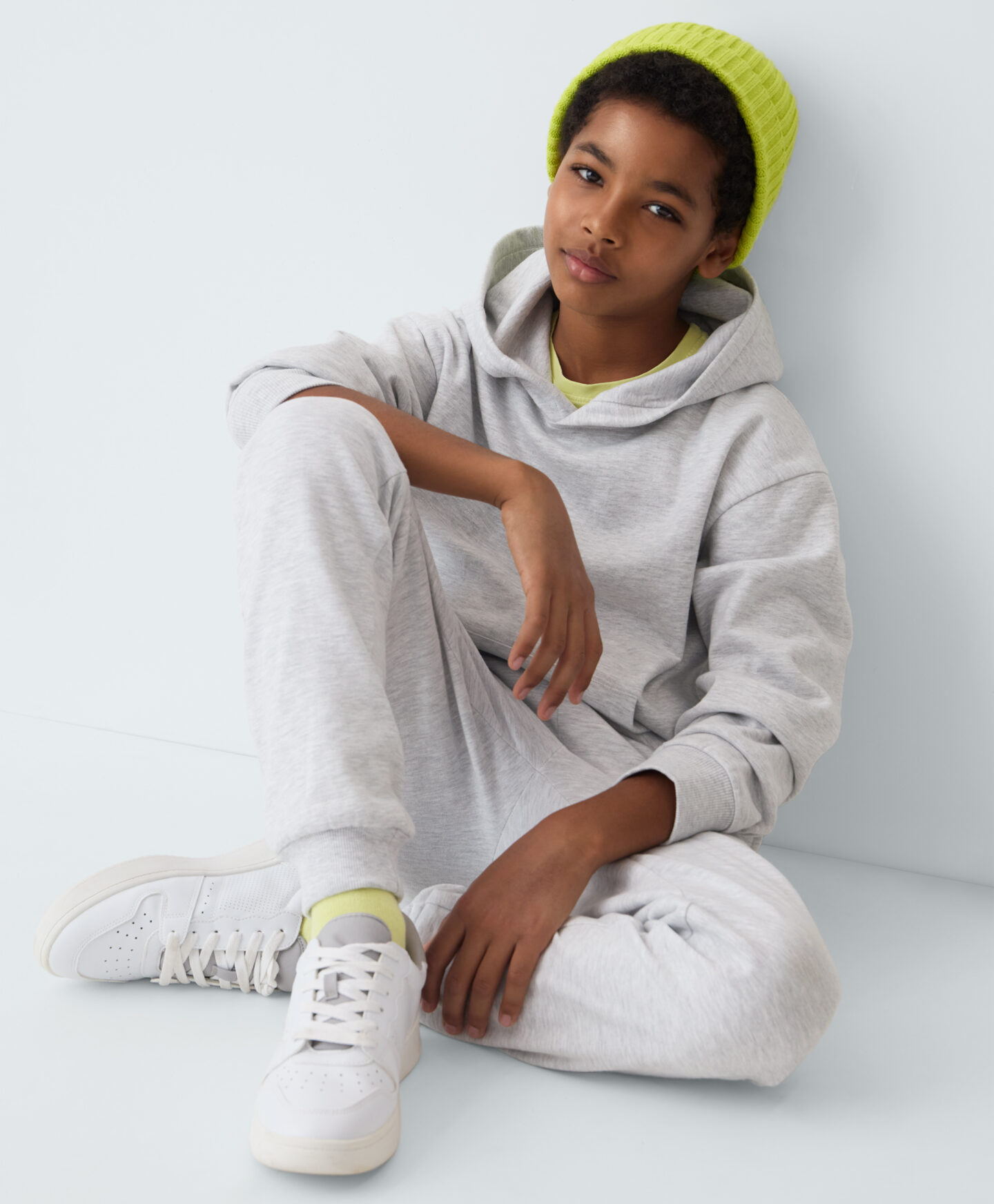 Sivi donji dio trenirke sa suženim nogavicama za dječake naglašava jednostavnost koja prati mladenačku energiju! Nema gumbe, već udobnu vezicu u struku, kao i sužene nogavice na gležnjevima. Zahvaljujući tome, djeca se mogu u potpunosti usredotočiti igru i sportske aktivnosti!