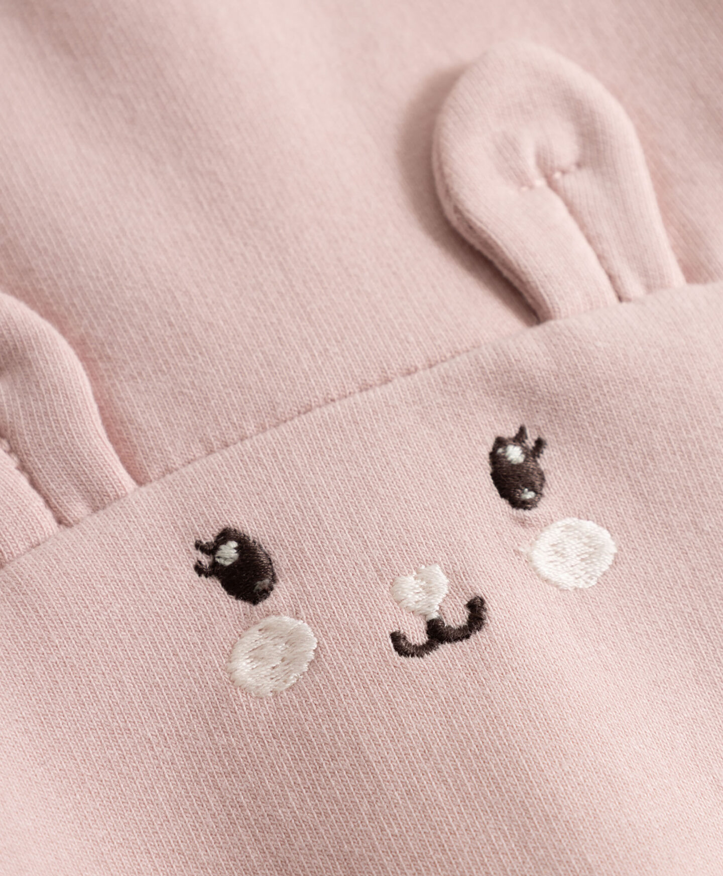 Donji dio trenirke s 3D ušima za bebe djevojčice oduševit će baš sve. Savršen je izbor za svaku bebu. Nježan materijal s visokim udjelom pamuka jamči udobnost od prvih zajedničkih trenutaka. Donji dio trenirke mekan je, ugodan na dodir i prozračan. Uz gornji dio trenirke s motivom zeca iz najnovije kolekcije čini neodoljiv komplet.