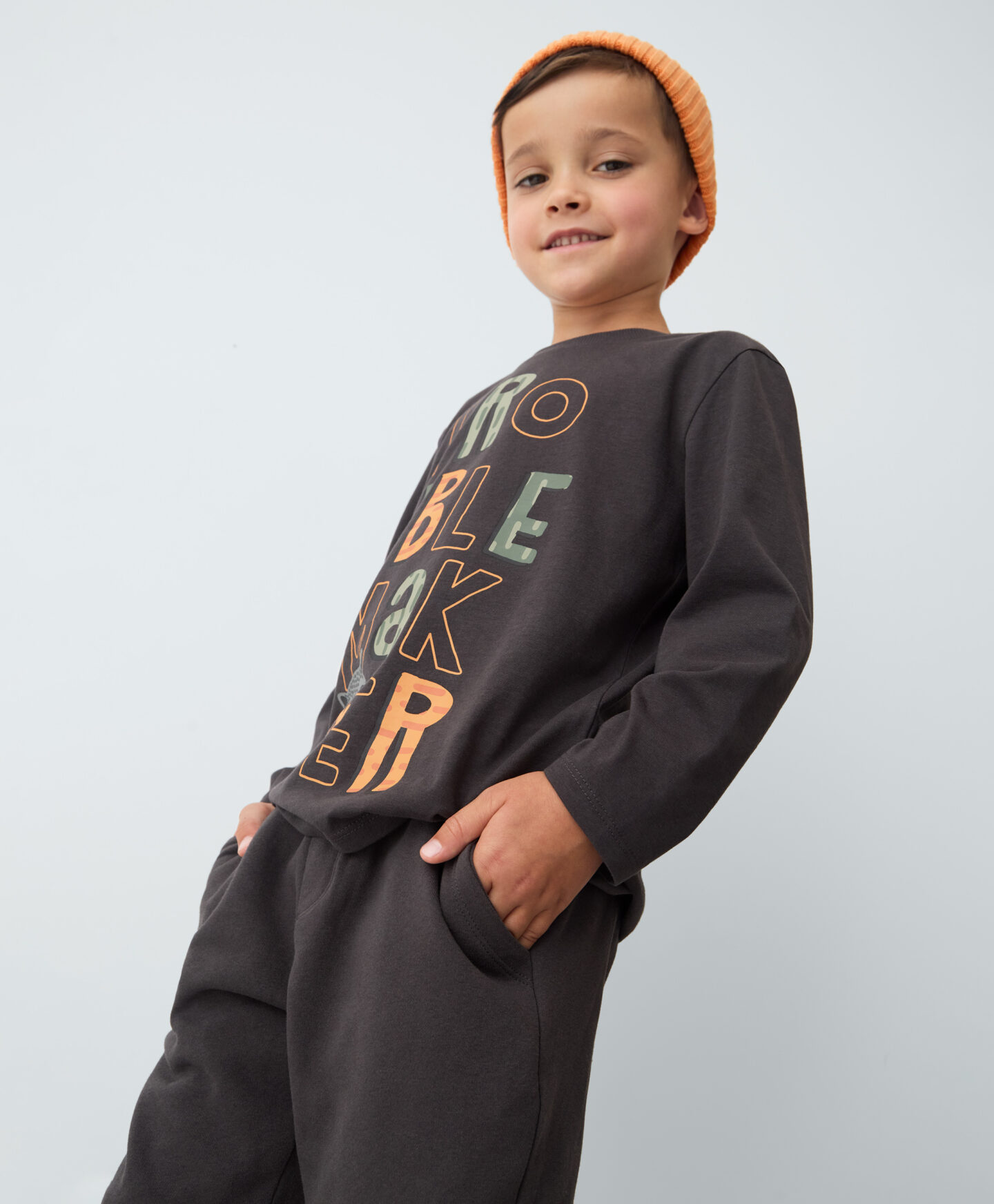 Donji dio trenirke s visokim udjelom pamuka za dječake neizostavan je dio svake jesenske garderobe. Ima elastične manžete pa pruža toplinu i udobnost. Ugodan materijal nježno grli kožu, osiguravajući udobnost pri svakom pokretu. U ponudi potražite i majicu dugih rukava koja mu savršeno pristaje.