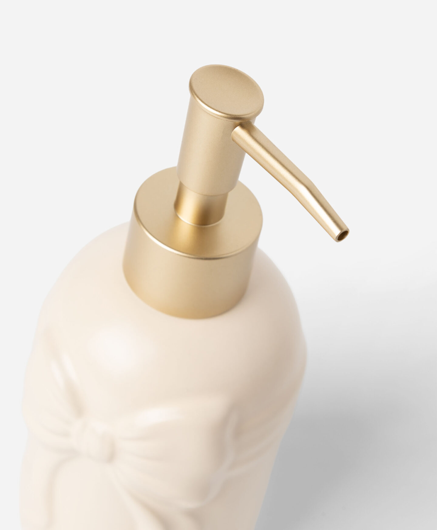 Dozator za sapun s mašnom elegantan je i praktičan dodatak vašoj kupaonici ili kuhinji. Mašna mu daje jedinstven izgled i savršeno se kombinira s ostalim dodacima iz kolekcije. Dozator je jednostavan za upotrebu i omogućuje precizno doziranje sapuna te pomaže u održavanju urednosti prostora.