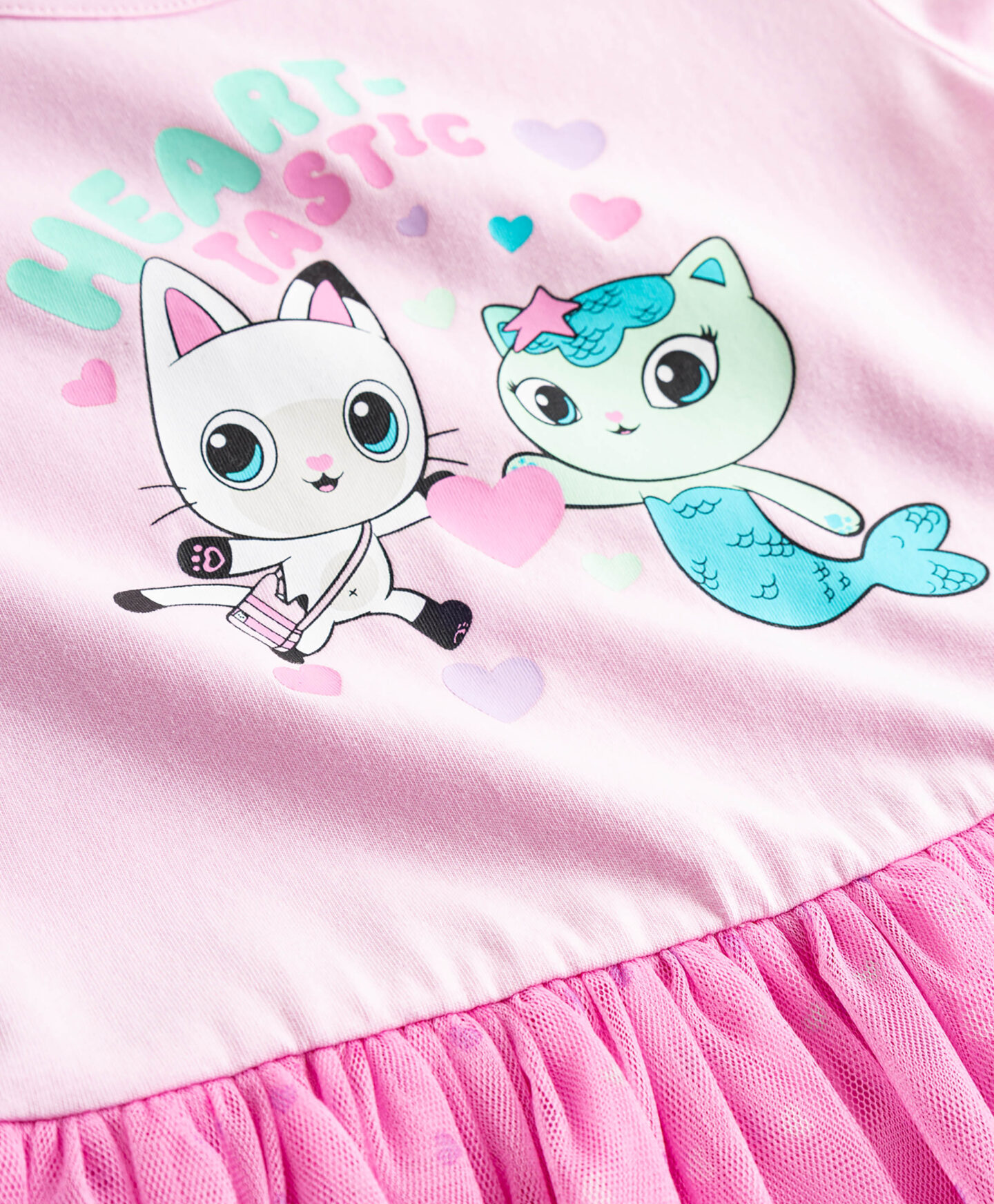 Haljina Gabby’s Dollhouse za djevojčice izgleda lepršavo i bajkovito zahvaljujući donjem dijelu od tila. Motiv omiljenih crtanih likova na prsima oduševit će sve pa se haljina ističe među ostalim odjevnim komadima. Ovo je već gotova odjevna kombinacija za vrtić ili obiteljsko slavlje.