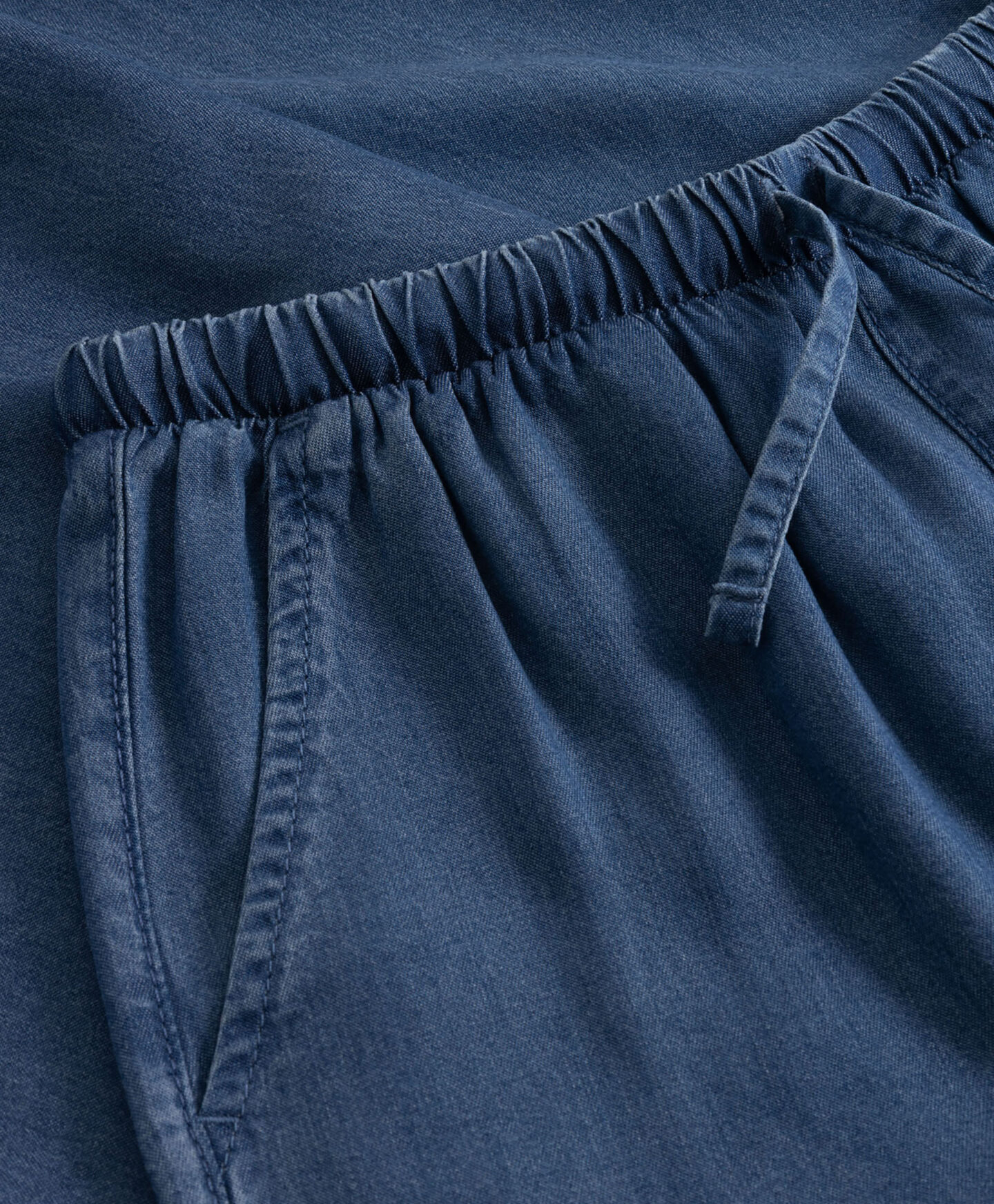 Hlače modernog kroja od 100% liocela za djevojčice izrađene su od prirodne tkanine. Materijal je gladak i ugodan na dodir, pogodan za osjetljivu dječju kožu. Široke nogavice jamče slobodu pokreta i moderan izgled. Klasična tamnoplava boja jednostavna je za održavanje i pristaje uz većinu odjeće. Hlače su odličan odabir za svaku prigodu!