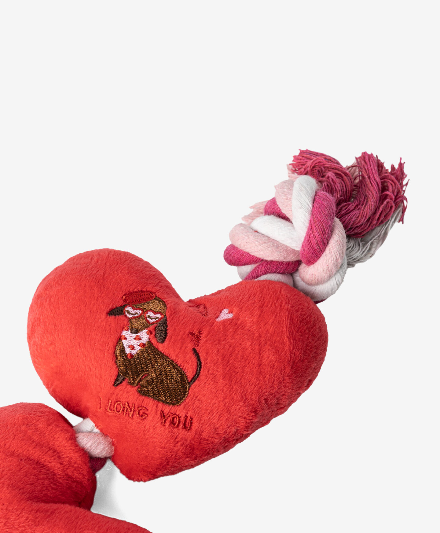 Igračka za pse uže s dva srca savršen je izbor za ljubimce koji vole aktivnu igru. Jedno od srca pišti, što dodatno stimulira psa i potiče na igru. Izdržljivo uže idealno je za povlačenje, dok su plišana srca odlična za žvakanje. Ova igračka izvrstan je način da zabavite svog psa i provedete vrijeme zajedno.
