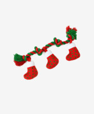 Igračka za pse uže s božićnim čarapama šarenog je dizajna i ima mekane dodatke u obliku crvenih božićnih čarapa. Čvrsto uže osigurava izdržljivost, dok paleta boja daje igri blagdansko raspoloženje. Plišani elementi također čine igru raznolikom i pružaju psu zabavnu aktivnost kroz kretanje i igru.