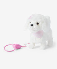 Interaktivni bijeli pas na uzici omogućuje djetetu da osjeti radost vođenja vlastitog kućnog ljubimca u šetnju. Uz priloženu uzicu, igračka se kreće tijekom šetnje i potiče aktivnu igru. Mekana dlaka čini plišanu igračku ugodnom na dodir pa će brzo postati omiljeni pratilac u svakodnevnim avanturama vaše djece. Psić se kreće i može lajati.