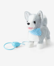 Interaktivni sivi pas na uzici razvija osjećaj odgovornosti i brige za životinje kod djece. Dok ga vode na uzici, psić postaje vjeran pratitelj u šetnjama i izvrstan partner za igru. Izrađen je od mekog materijala pa je idealan i za maženje. Psić može lajati.