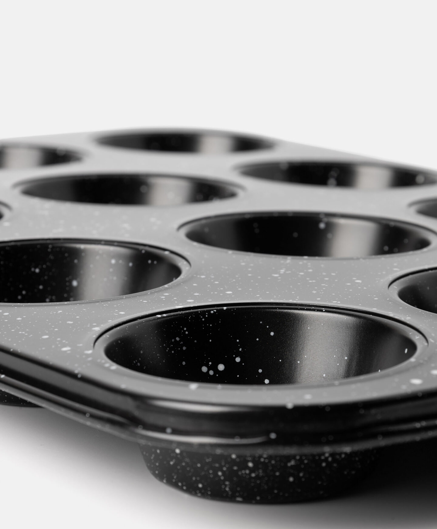 Kalup za muffine omogućuje vam pečenje 12 muffina odjednom. Jednostavan je za korištenje, otporan na toplinu i lako se čisti. Pečene poslastice se ne lijepe za kalup, a mramorni motiv kalupa izgleda elegantno. Obavezan je dodatak za svakog ljubitelja kuhanja i pečenja!