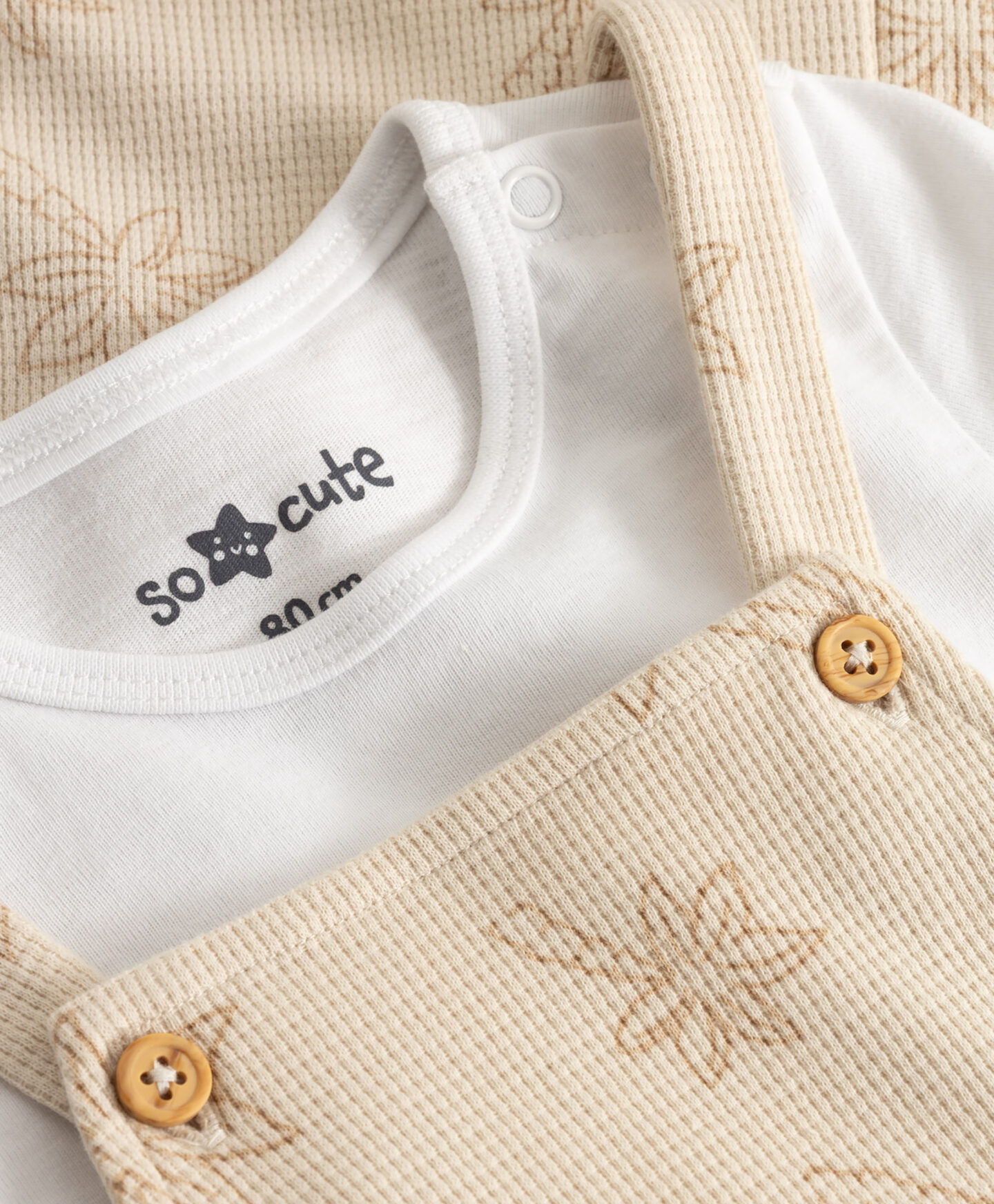 Komplet od 100% pamuka za bebe jamči kvalitetu i udobnost za vaše dijete. Pamuk je siguran za osjetljivu bebinu kožu, ne uzrokuje iritacije i omogućuje koži da diše. Komplet uključuje: bodi kratkih rukava i kombinezon. Kopčanje na bodiju čini mijenjanje pelena jednostavnim bez potrebe za skidanjem sve odjeće. Moderan kombinezon ima opušten kroj koji ne ograničava bebino kretanje i pruža dovoljno prostora za pelene.