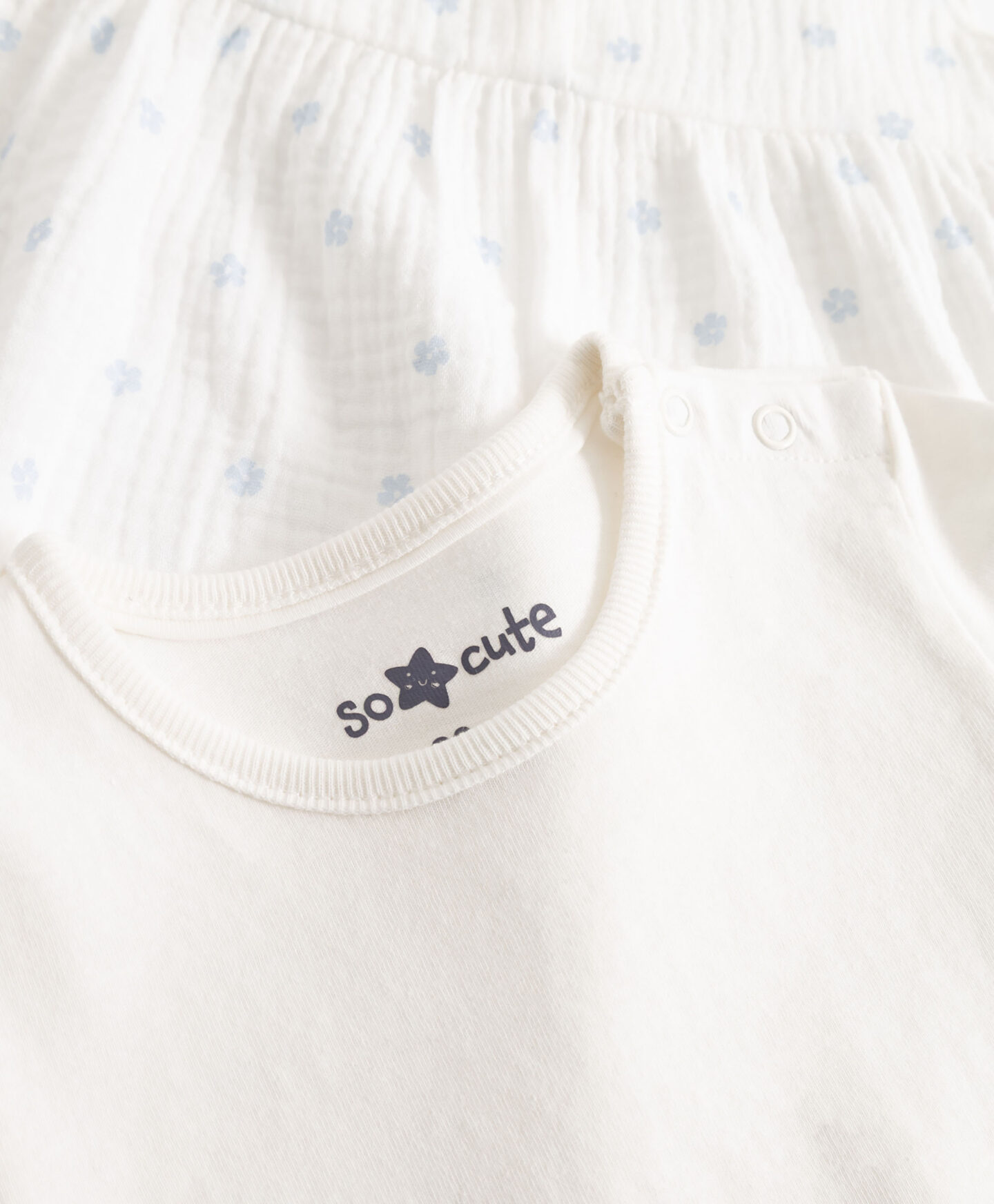Komplet od 100% pamuka za bebe djevojčice stvoren je za male princeze. Komplet uključuje praktični pamučni bodi i haljinu od muslina. Bodi je odličan kao baza za odjevne kombinacije i nošen ispod haljine. Haljina od muslina lagana je i prozračna. Neodoljivi leptir rukavi dodaju dašak lepršavosti svakoj odjevnoj kombinaciji.