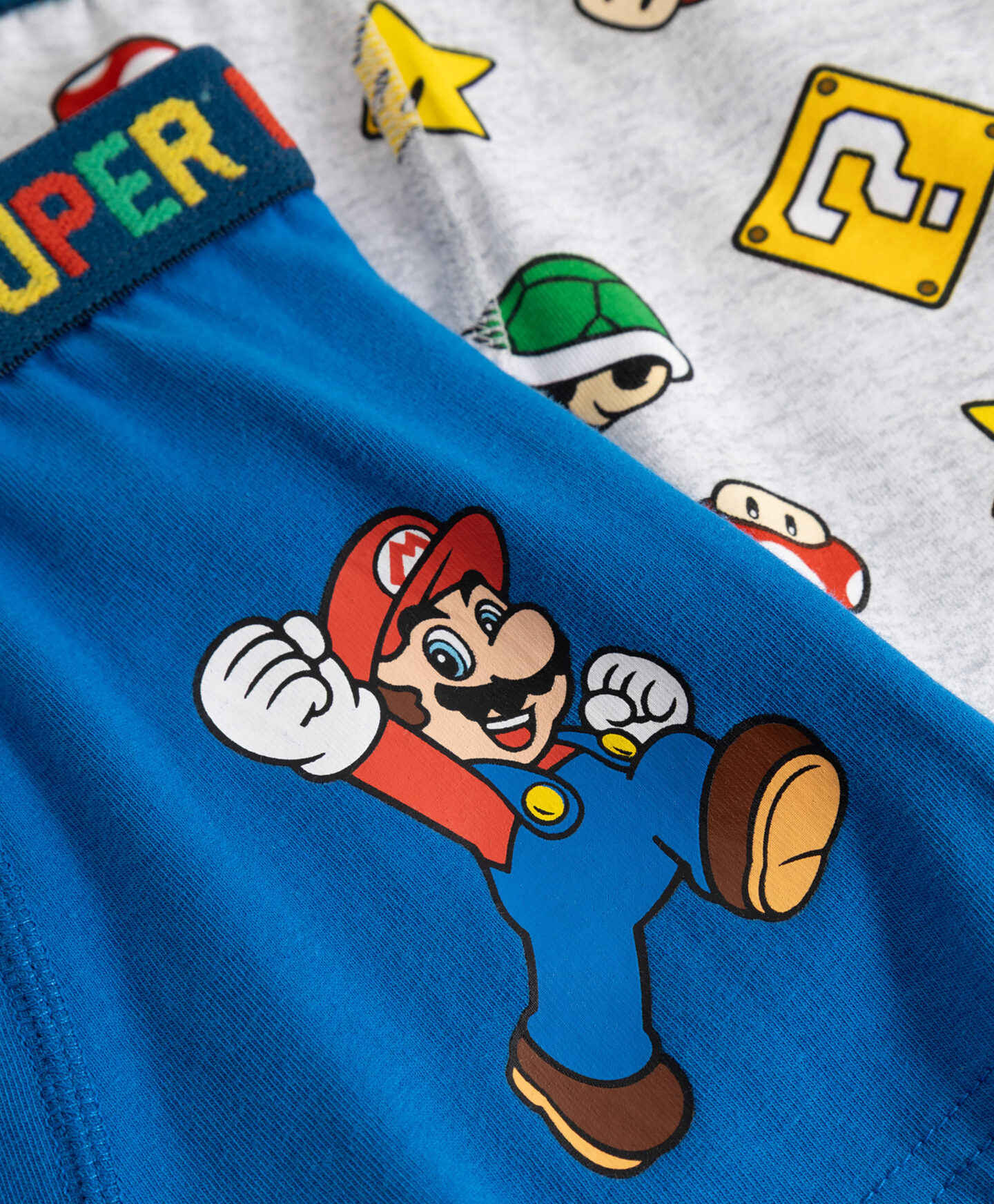 Komplet 2 komada bokserica Super Mario s visokim udjelom pamuka za dječake spoj je udobnosti i zanimljivog dizajna. Svaki par krasi drugačiji motiv s legendarnim likovima iz Nintendo igrica i šareni natpis na elastičnoj traci. Bokserice su udobne i pružaju potpunu slobodu kretanja.