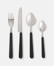 Komplet 24 komada pribora za jelo: žlice, vilice, noževi i žličice. Metalni s plastičnom drškom, dobro će se uklopiti u vašu kuhinju.