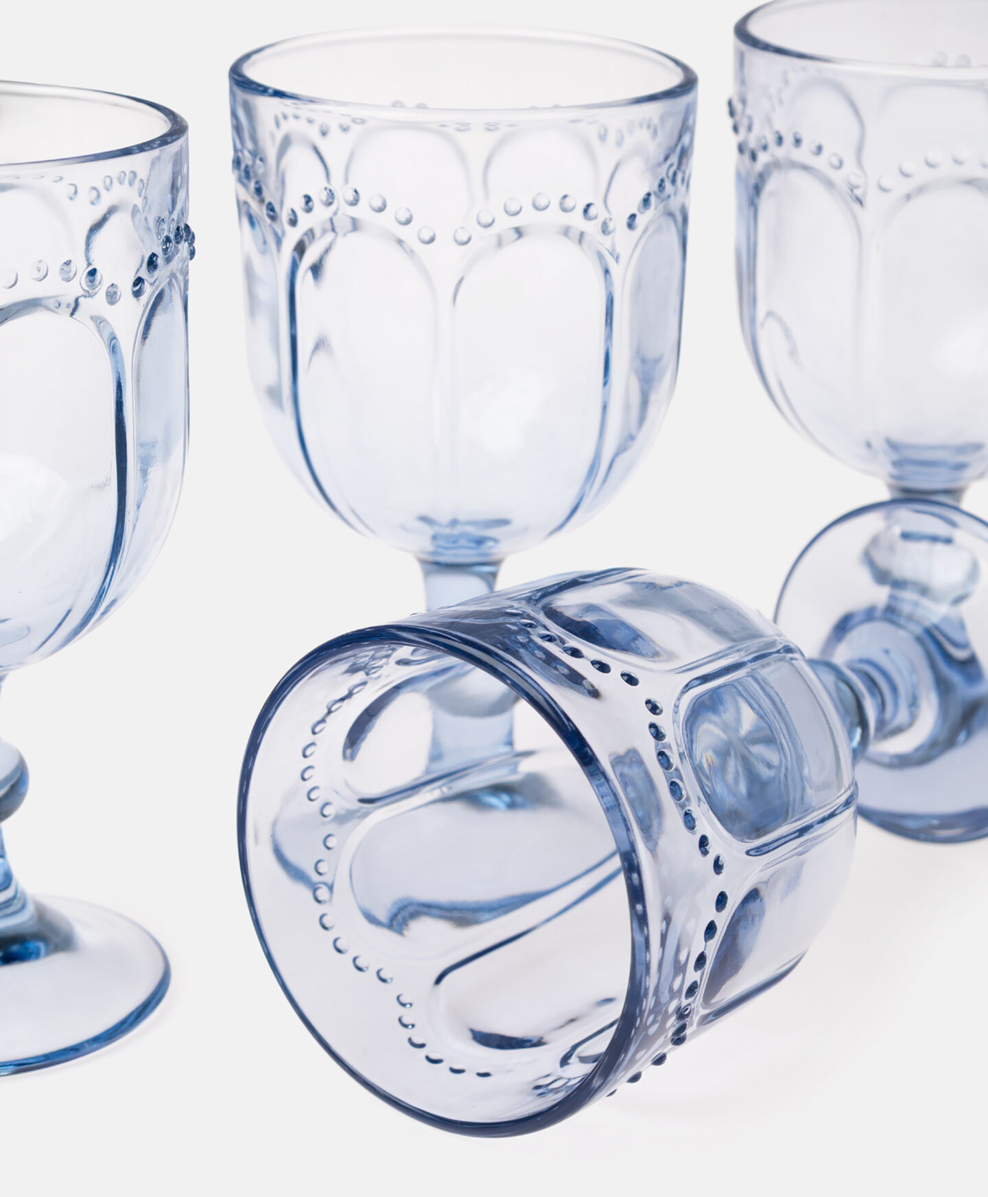 Komplet 4 čaše istaknut će se u vašim kuhinjskim ormarićima. Staklo lijepo reflektira svjetlost, stvarajući zanimljiv vizualni efekt i dodajući dozu elegancije svakom stolu. Staklo je također izdržljivo i otporno na ogrebotine. U kolekciji ćete pronaći i komplet vrča i čaša istog dizajna.