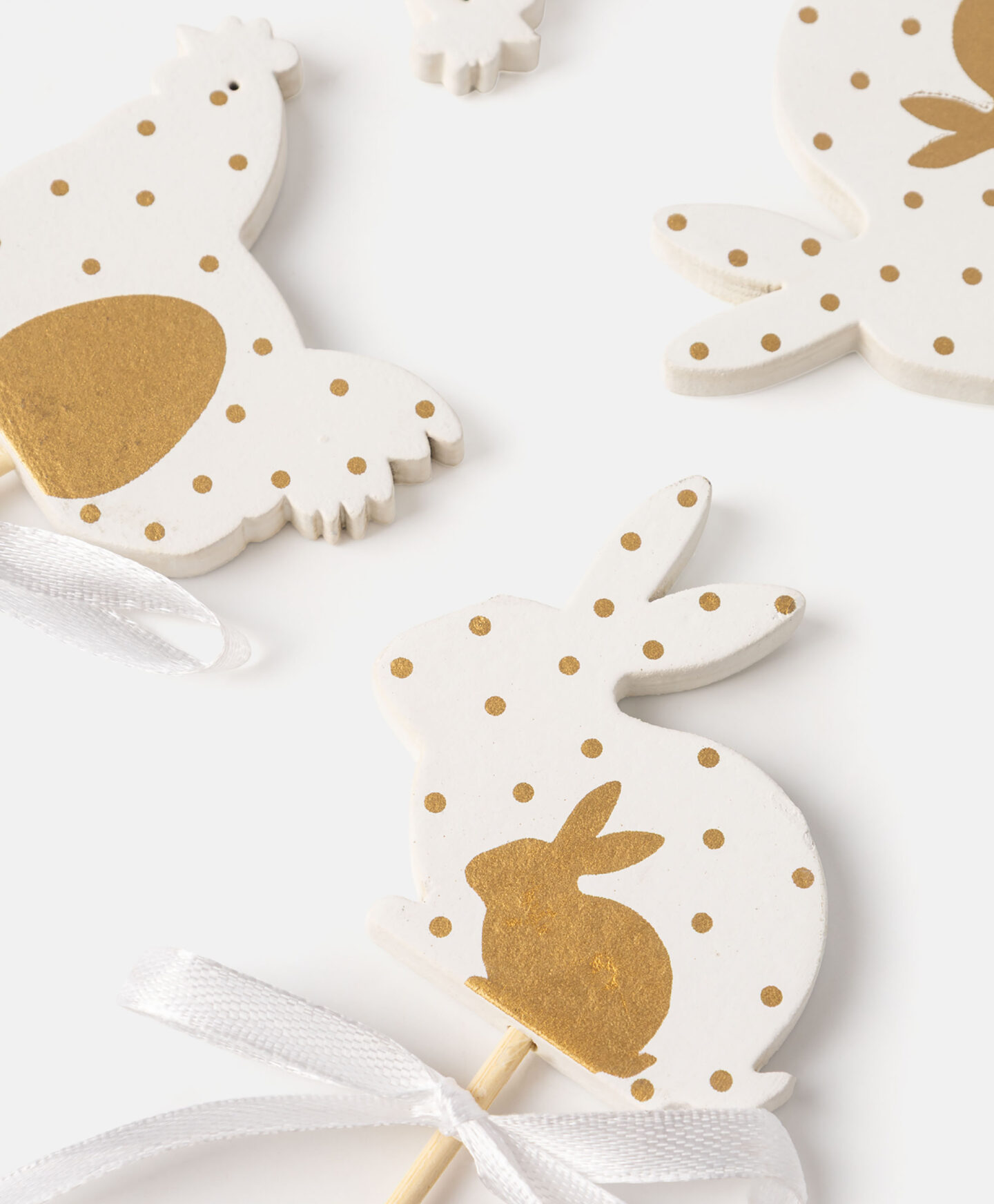 Komplet 4 ukrasna štapića s motivom kokoši i zeca elegantna je dekoracija inspirirana simbolima Uskrsa. Štapići su savršeni za ukrašavanje košara, tegli ili buketa. U ponudi su različiti dizajni.