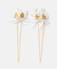 Komplet 4 ukrasna štapića s motivom kokoši i zeca elegantna je dekoracija inspirirana simbolima Uskrsa. Štapići su savršeni za ukrašavanje košara, tegli ili buketa. U ponudi su različiti dizajni.