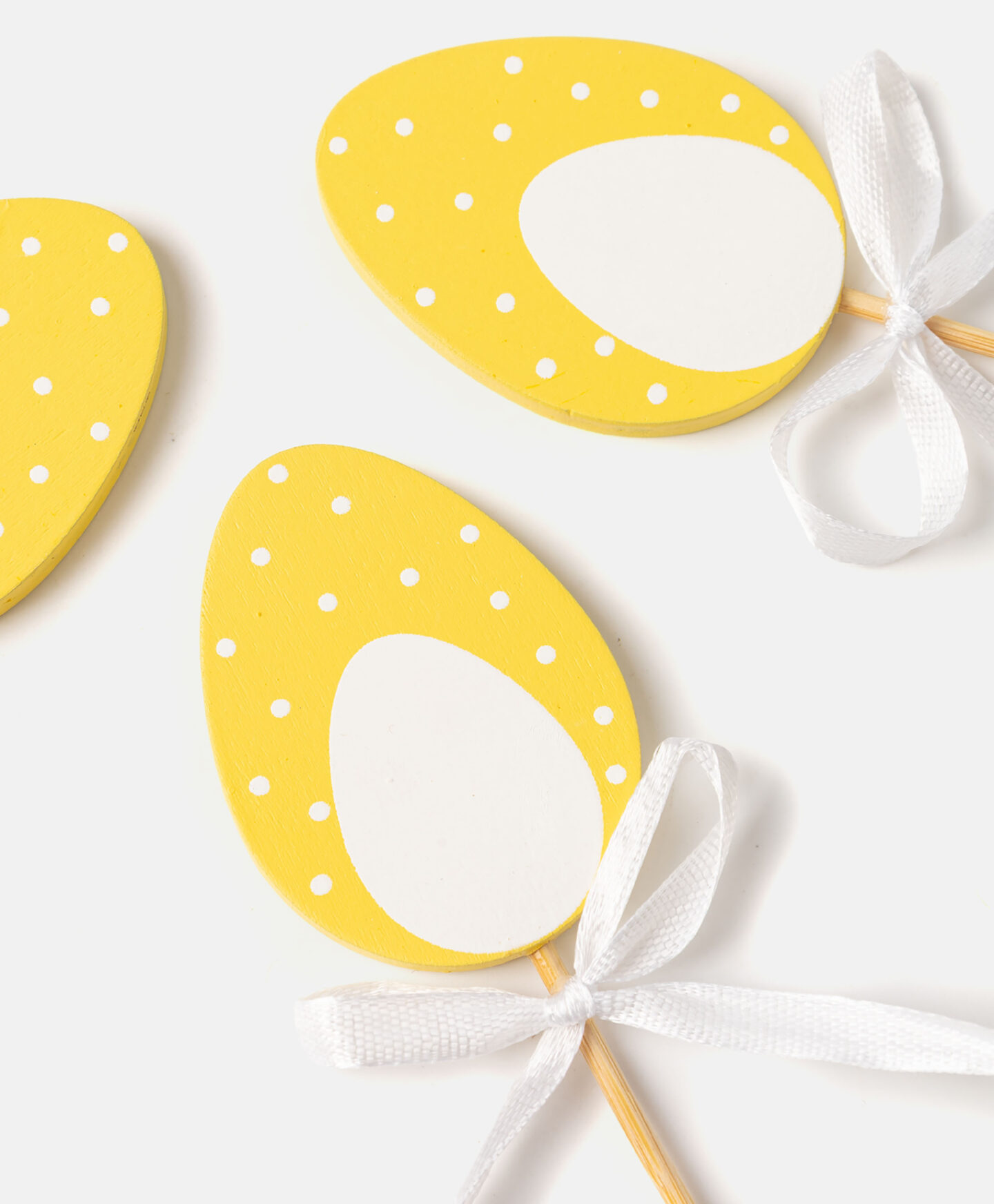 Komplet 4 ukrasna štapića s motivom jaja i mašnama elegantna je dekoracija inspirirana simbolima Uskrsa. Štapići su savršeni za ukrašavanje košara, tegli ili buketa. U ponudi su različiti dizajni.