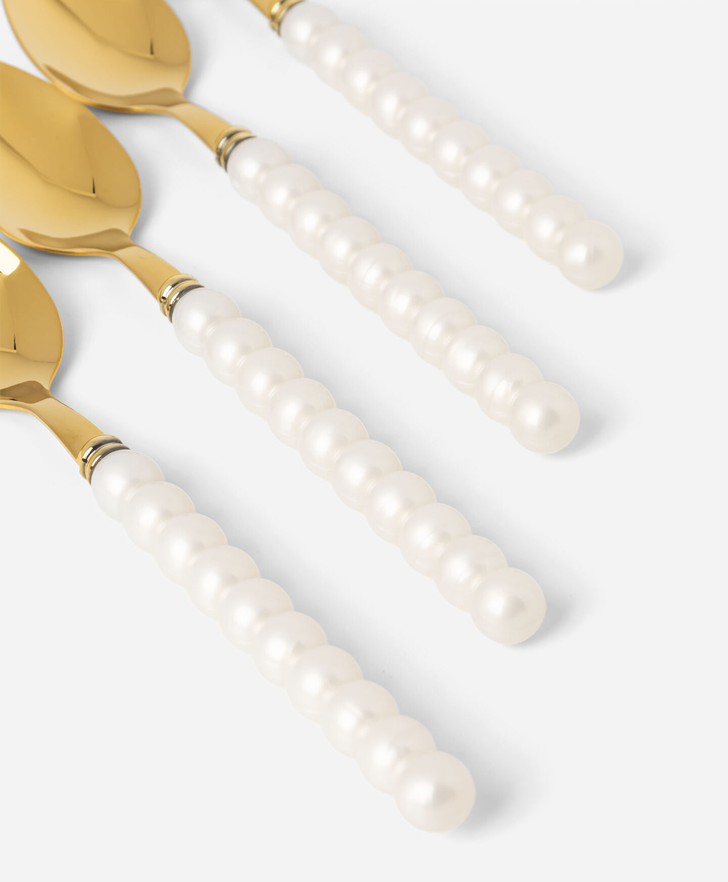 Komplet 4 žličice s biserima elegantan je odabir za svaku pauzu za čaj. Praktične drške ukrašene suptilnim biserima donose dašak profinjenosti na svaki stol. Savršene su za svakodnevnu upotrebu, ali i za posebne prilike te će odlično upotpuniti svaki komplet posuđa.