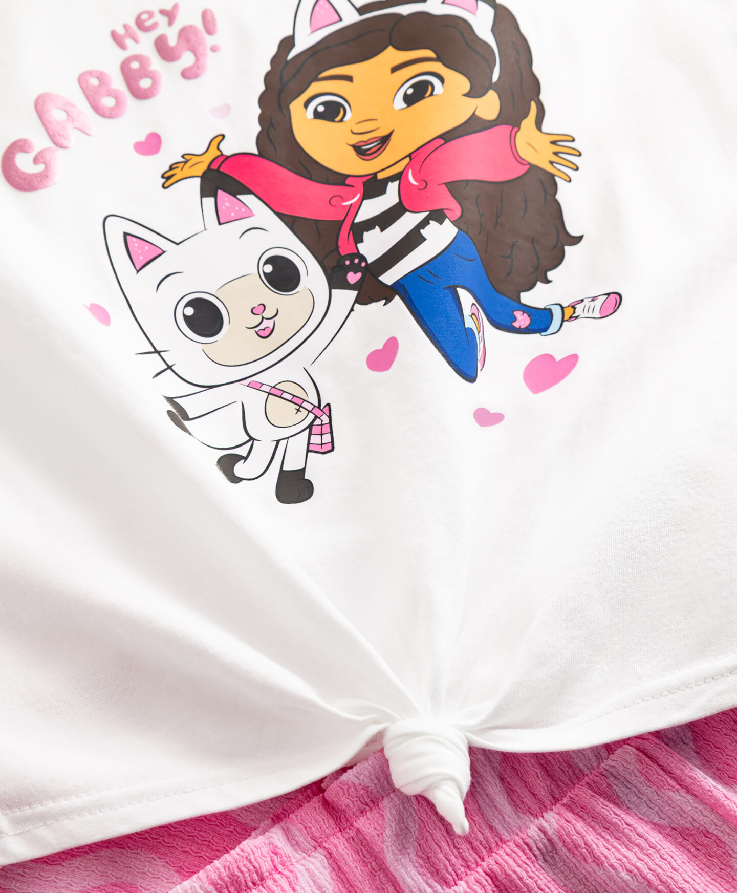 Komplet Gabby’s Dollhouse za djevojčice moderna je kombinacija koja će se svidjeti svim mladim ljubiteljicama stila. Majica kratkih rukava s mašnom i otiskom najdražih likova oduševit će sve. Ovo je već gotova odjevna kombinacija za vrtić, igru na otvorenom ili obiteljsku šetnju tijekom lijepih sunčanih dana.
