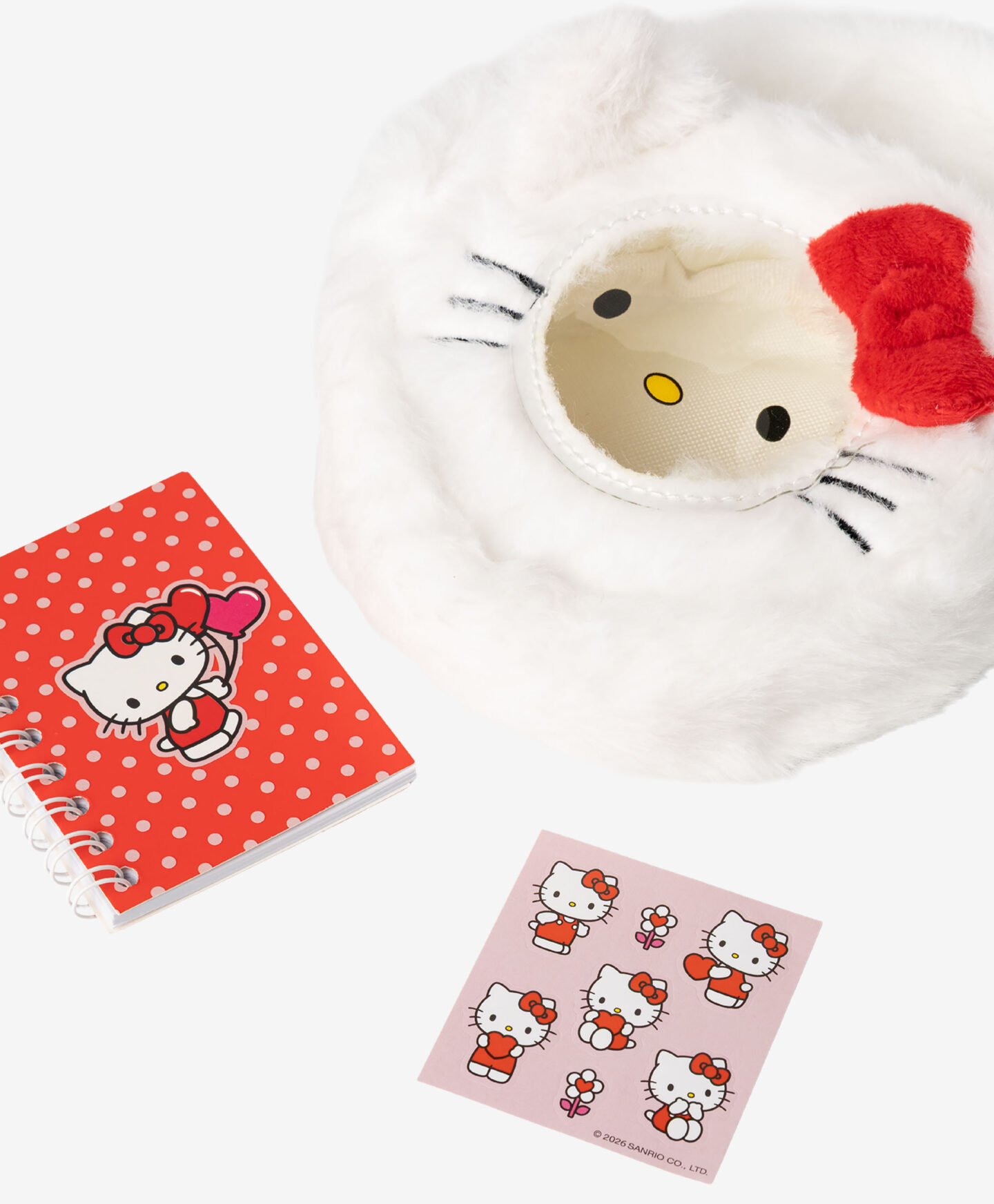 Komplet Hello Kitty sastoji se od mekanog novčanika i bilježnice s naljepnicama. Ovakav dodatak zasigurno će oduševiti svaku ljubiteljicu ovog legendarnog lika. Komplet je neodoljiv, kompaktan i uvijek spreman za zajedničke avanture! Novčanik s ručkom krasi prepoznatljiva crvena mašna, zaštitni znak Hello Kitty.