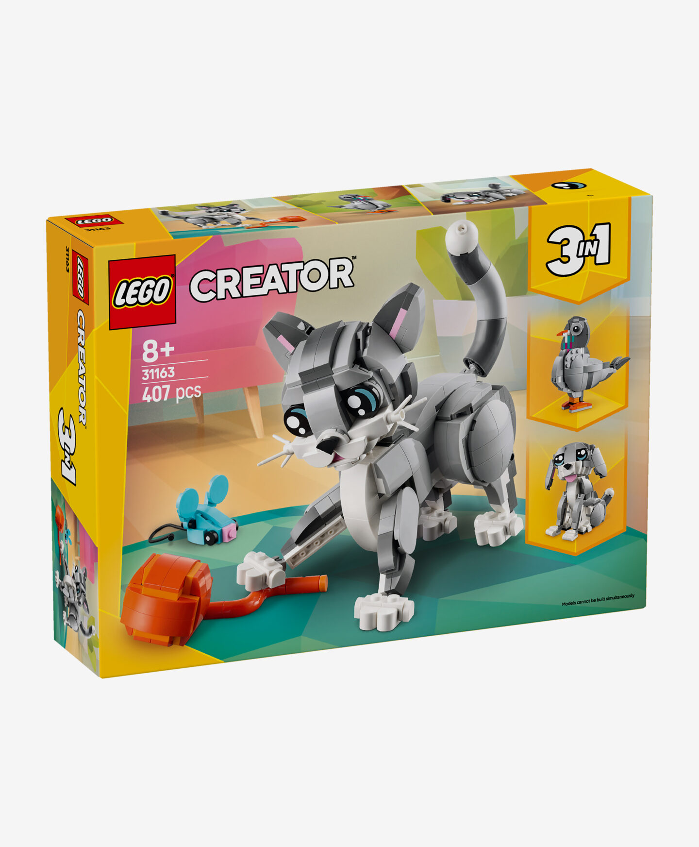 Komplet LEGO® Creator 3-u-1 mačka inspirira djecu na kreativnu igru. Djeca od kockica mogu izgraditi mačku s mišem, goluba ili psa. Uz različite mogućnosti gradnje, djeca imaju priliku razviti svoju maštu i svaki put kreirati različite priče.