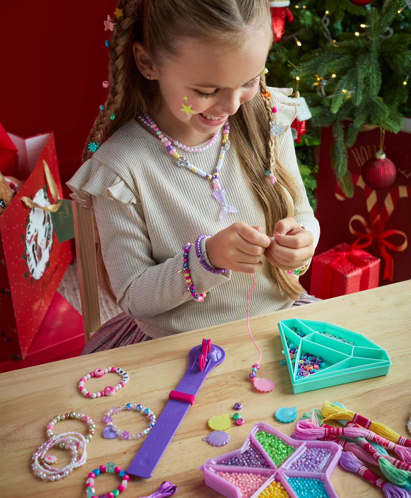 Komplet za izradu narukvica u kutiji omogućuje vam samostalno dizajniranje i nizanje šarenih perli u jedinstvene motive. Sve stane u praktičan kovčeg, što olakšava organizaciju kompleta i nošenje na putovanja. Ova aktivnost razvija vještine ruku, potiče maštu i donosi osjećaj zadovoljstva prilikom nošenja vlastitog nakita.