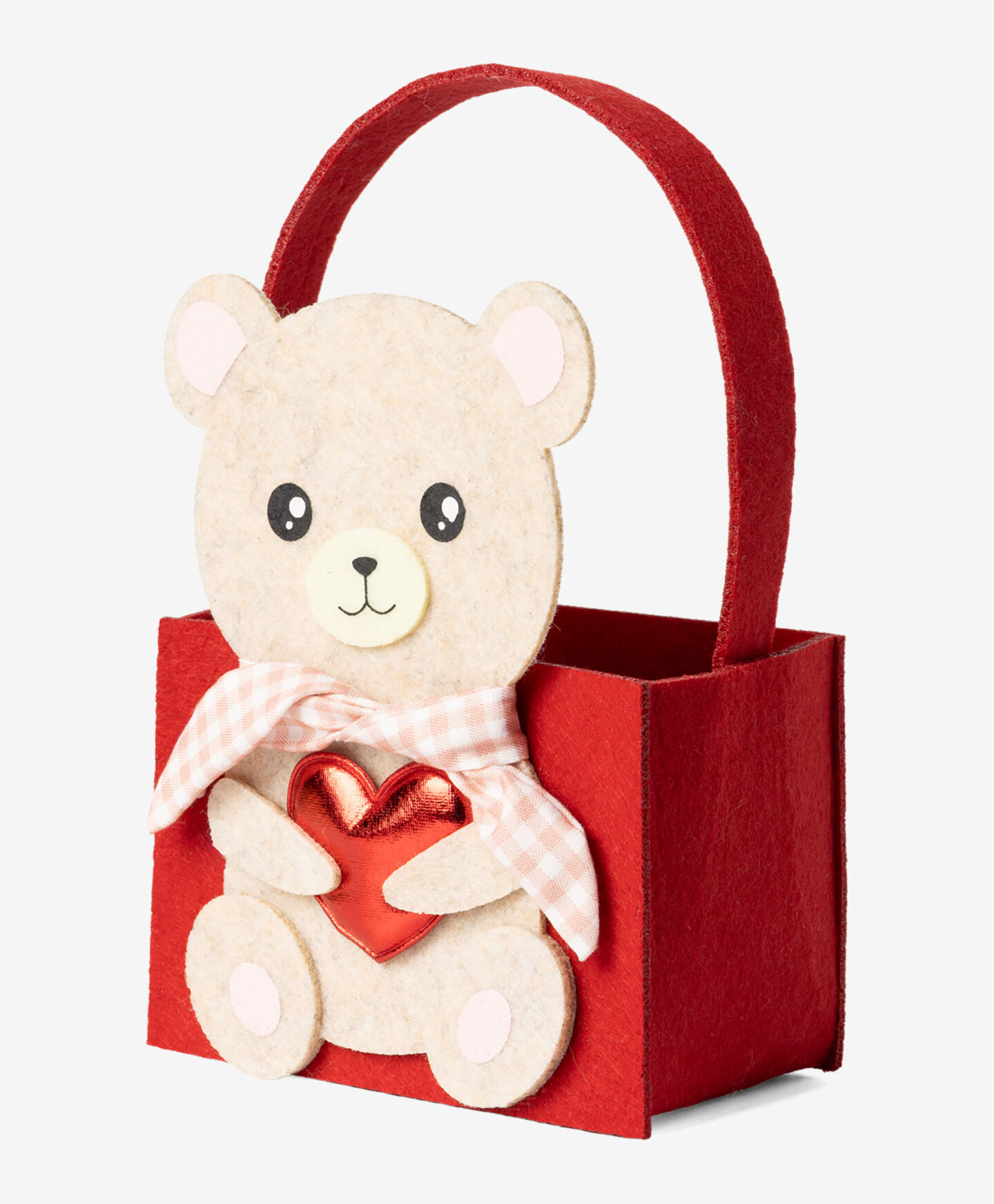 Košara od filca u obliku medvjedića savršen je način da izmamite nekome osmijeh na lice i istaknete jedinstvenost svakog poklona. Neodoljivo je pakiranje za poklone za Valentinovo kao što su čokolade, mirisne svijeće, nakit ili neki drugi romantični detalj. U ponudi su 3 različita dizajna.