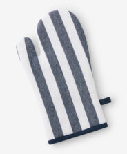 Tamno plava kuhinjska rukavica s prugama neizostavan je dodatak u svakoj kuhinji. Odlično štiti ruke od opeklina tijekom kuhanja i pečenja, osiguravajući sigurnost i udobnost korištenja. Bit će i dekorativni element u vašoj kuhinji. Dostupni su razni motivi.