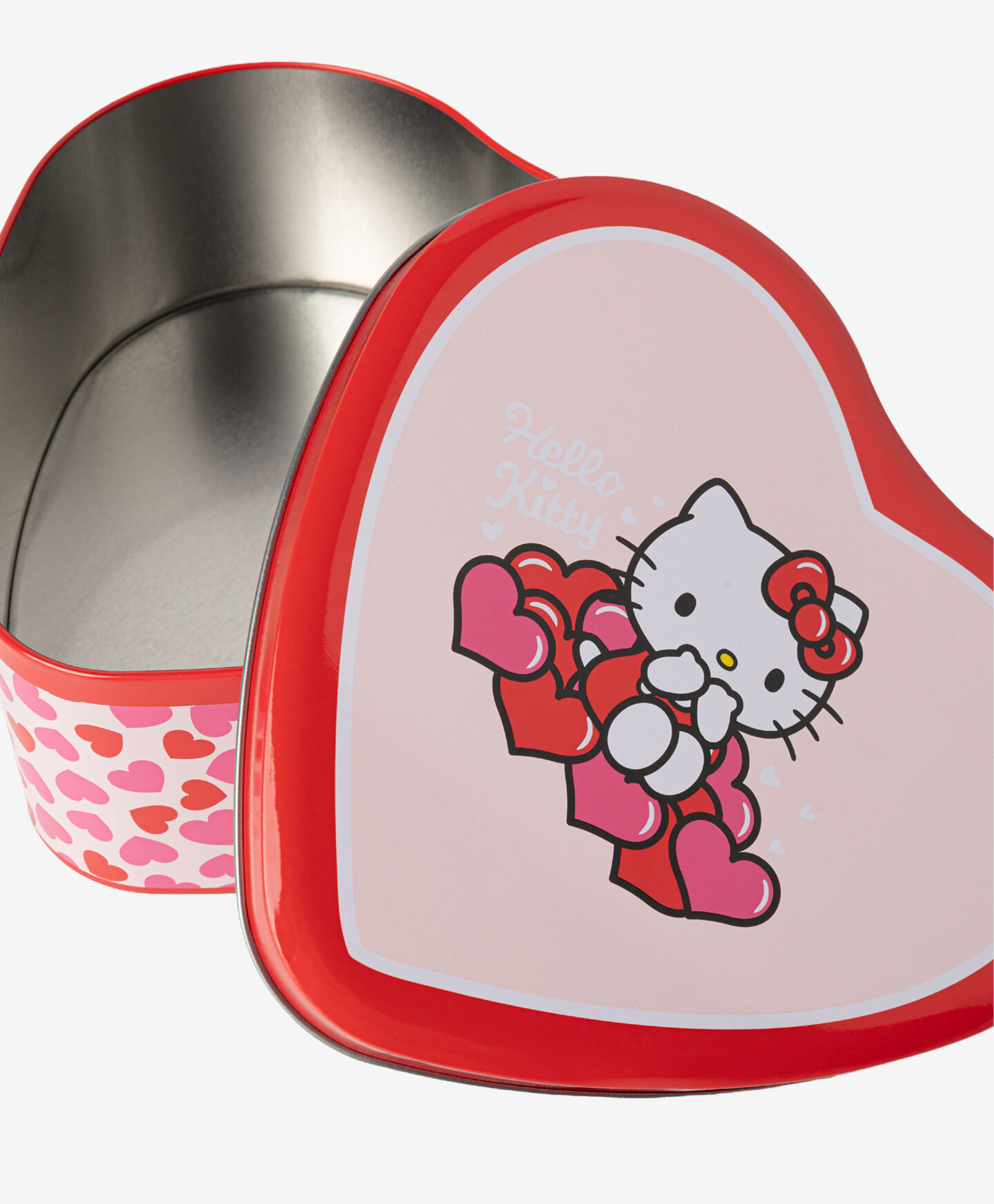 Limena kutija za kolače Hello Kitty s poklopcem čuva svježinu domaćih kolačića dugo vremena. Savršena je za pohranu pralina, bombona ili drugih slatkiša. Jedinstven oblik srca i slika preslatkog lika bit će odličan ukras vašoj kuhinji. Ova je kutija i izvrstan poklon.