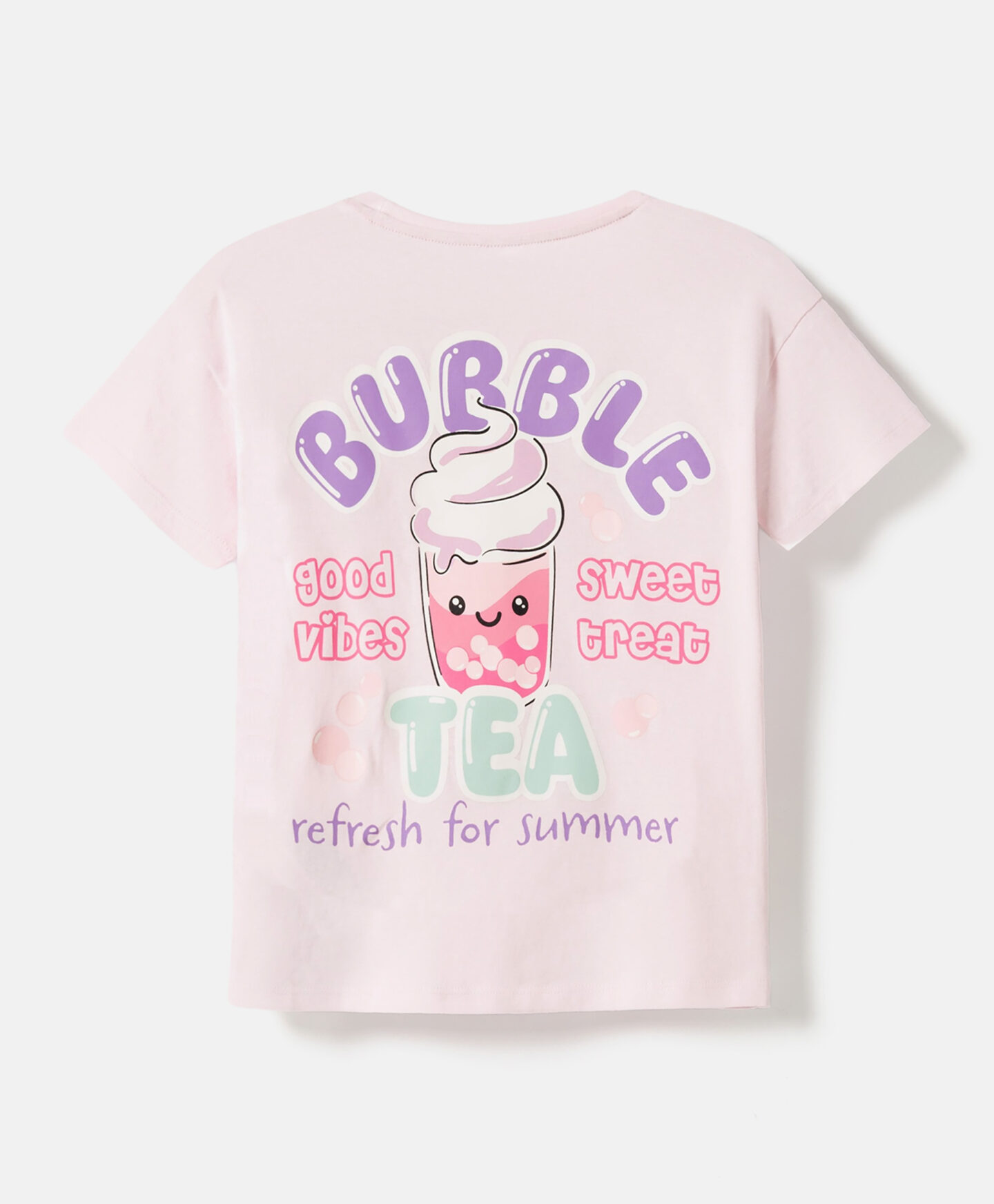 Ružičasta majica kratkih rukava od 100% pamuka savršen je izbor za djevojčice koje vole pastelne boje i minimalistički stil. Pamuk je nježan prema osjetljivoj koži, omogućuje joj da diše i osigurava udobnost tijekom cijelog aktivnog dana. Mali, pažljivo izrađen otisak dodaje dašak šarma majici.