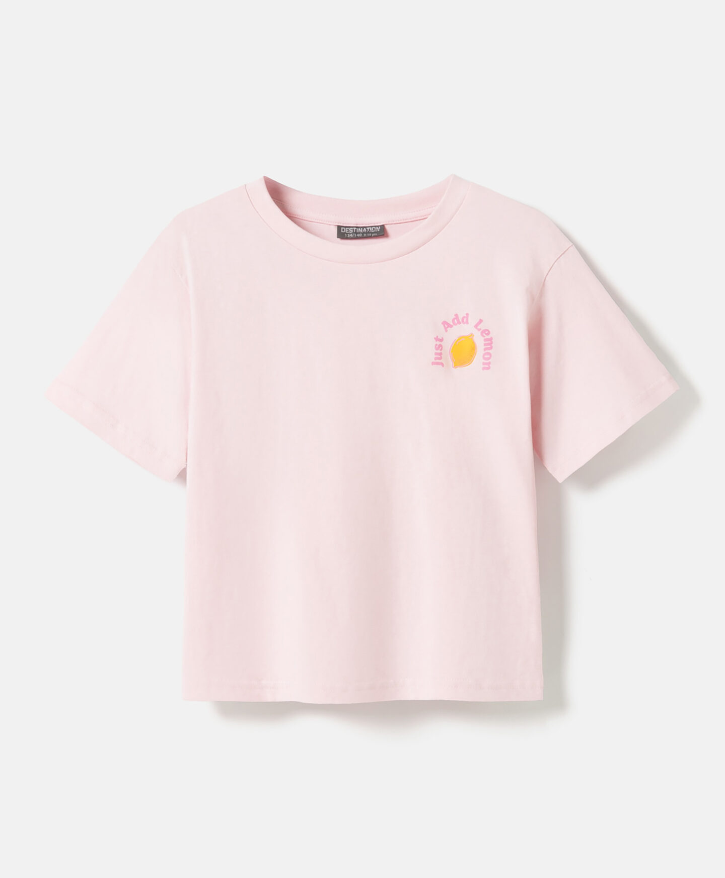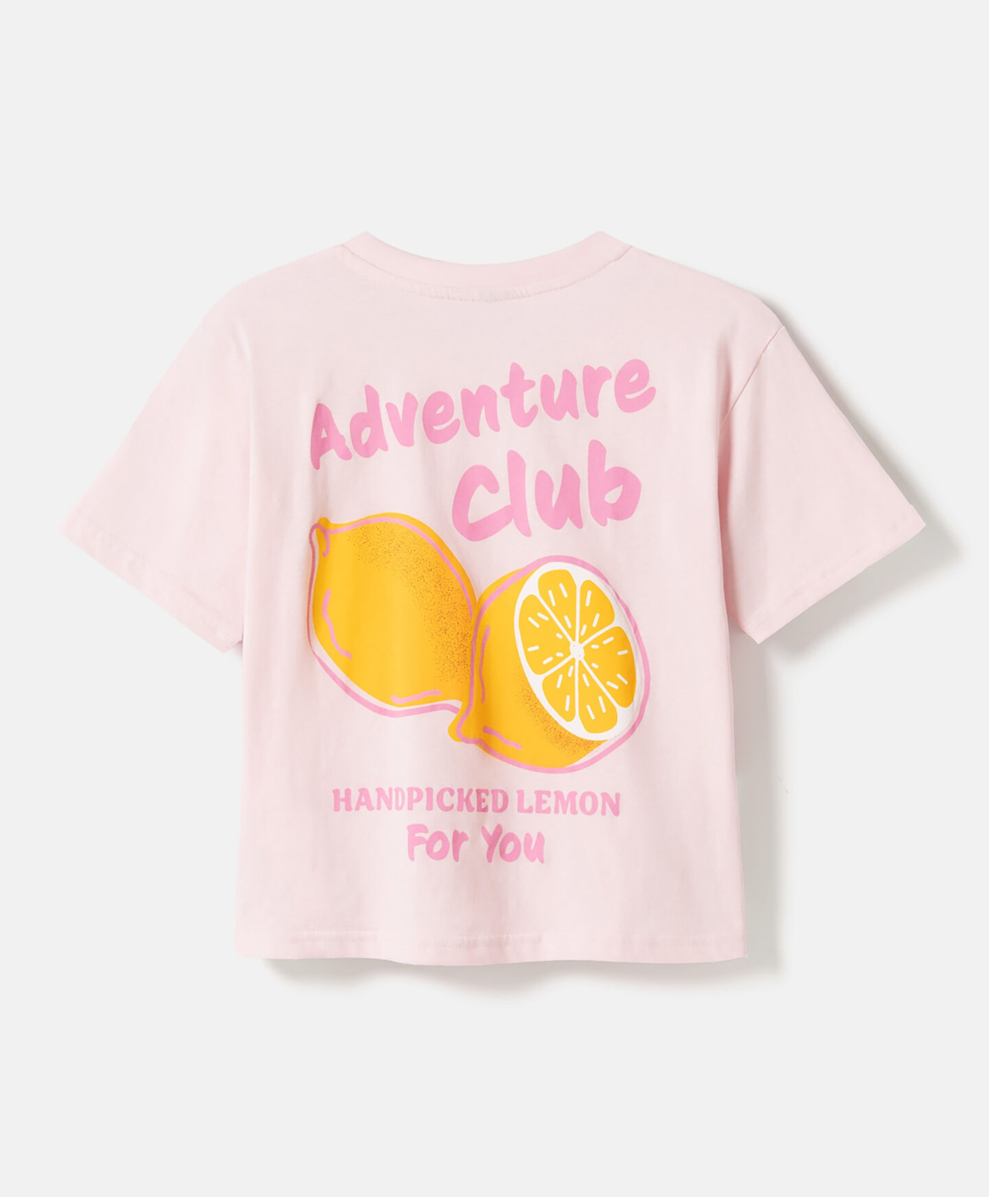 Majica kratkih rukava od 100% pamuka za djevojčice je pravi hit sezone! Otisak na leđima upečatljiv je detalj koji čini svaku odjevnu kombinaciju posebnom. Širi kroj osigurava potpunu slobodu kretanja i udobnost. Materijal je izdržljiv, prozračan i mekan na dodir.