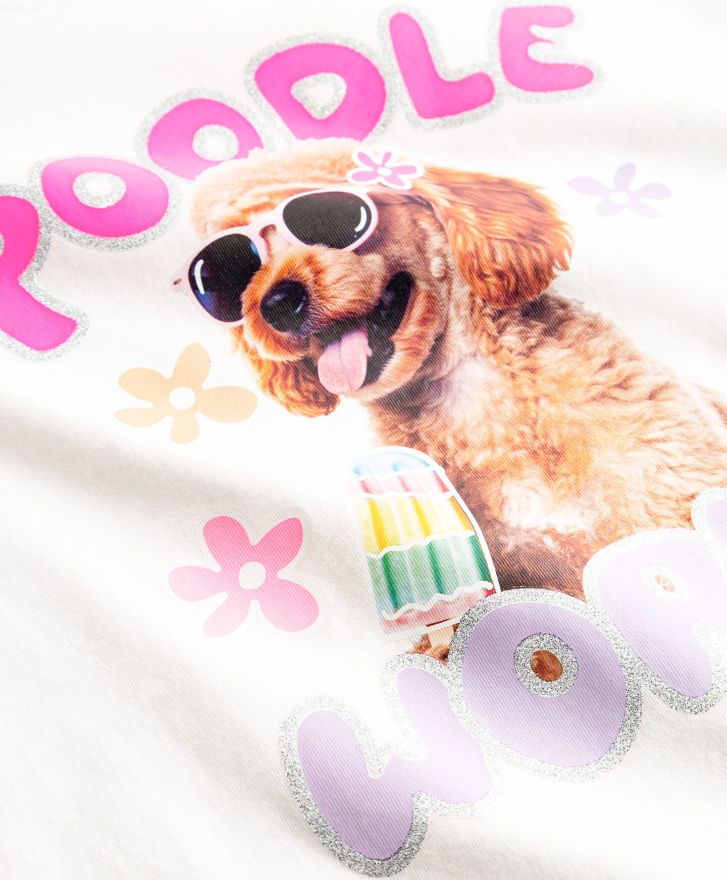 Majica kratkih rukava s neodoljivim otiskom psa za djevojčice izrađena je od 100% pamuka pa je savršen izbor za sve male ljubitelje životinja. Pamuk omogućuje koži da diše i osigurava cjelodnevnu udobnost.