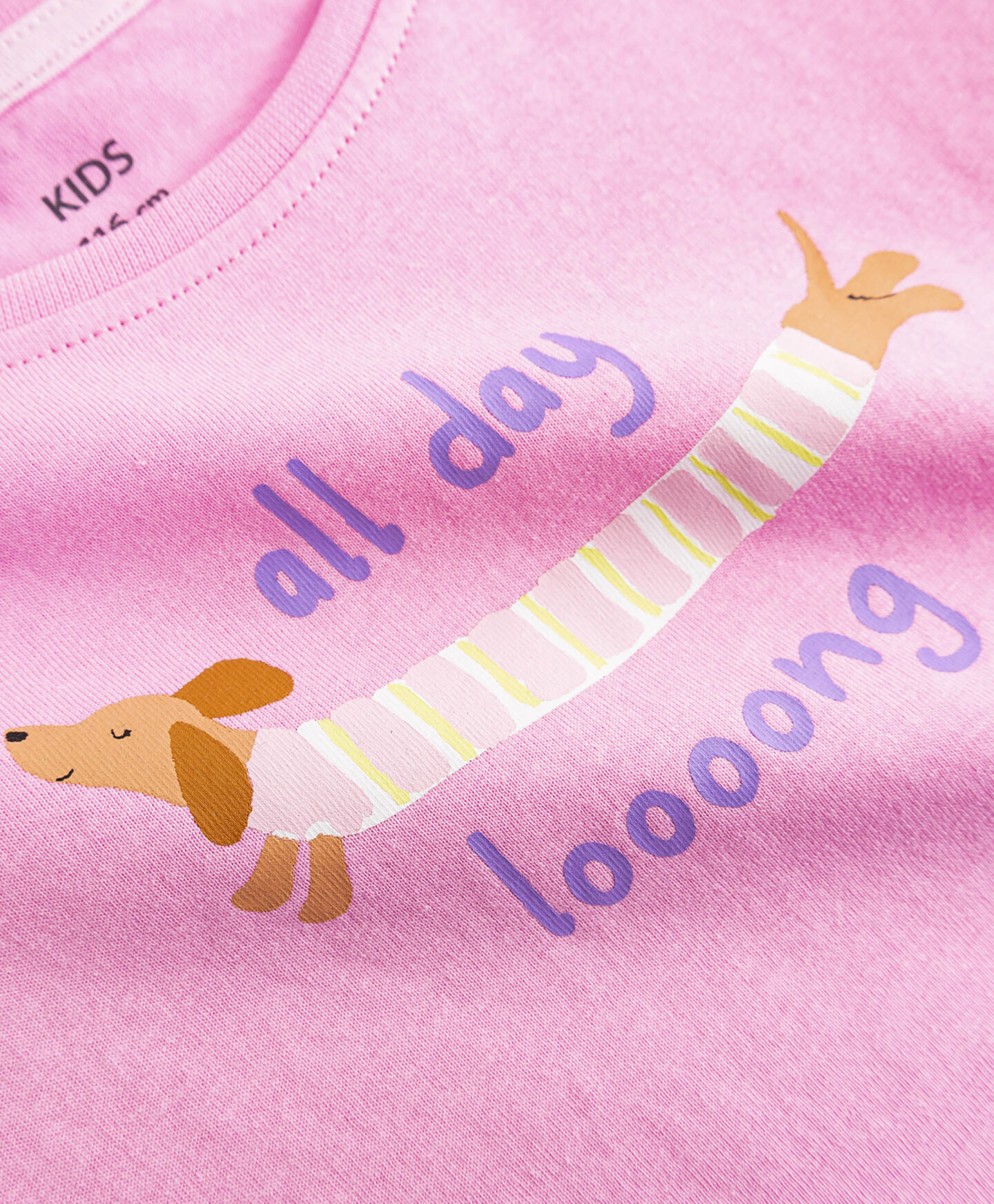 Majica kratkih rukava od 100% pamuka za djevojčice savršena je baza za razne odjevne kombinacije. Materijal je prozračan, mekan na dodir i siguran za osjetljivu kožu. Nježna ružičasta nijansa i suptilan otisak savršen su odabir za ljubiteljice dobrog stila!