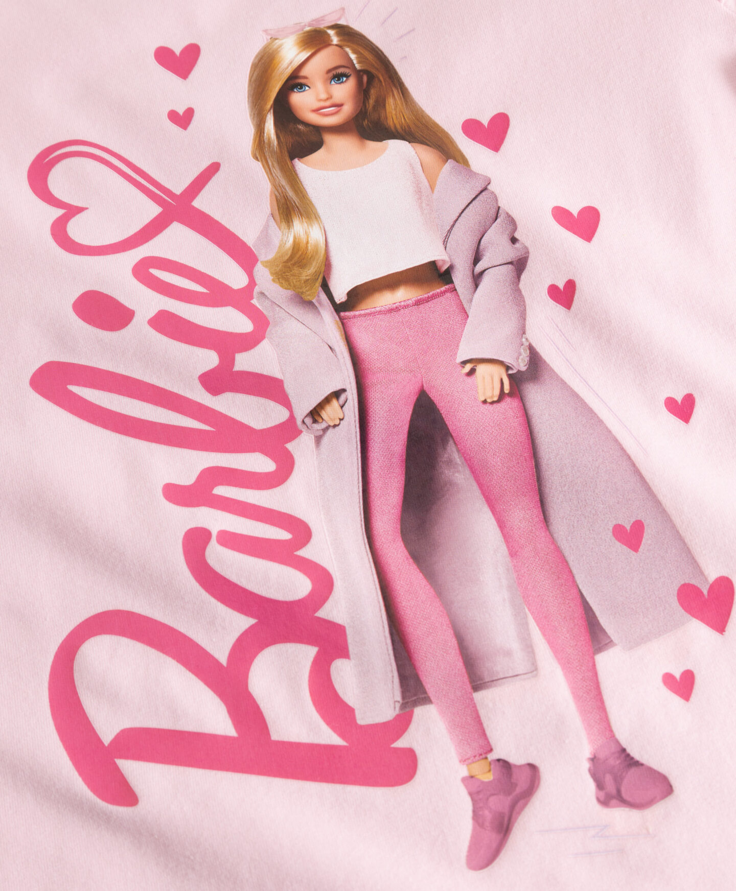 Majica kratkih rukava Barbie za djevojčice ima šarmantne volane na rukavima koji donose dašak elegancije svakoj odjevnoj kombinaciji. Savršeno pristaje i uz suknju i uz traperice. Veliki otisak najpoznatije lutke na prsima dodatno privlači pažnju i čini majicu zaista posebnom.