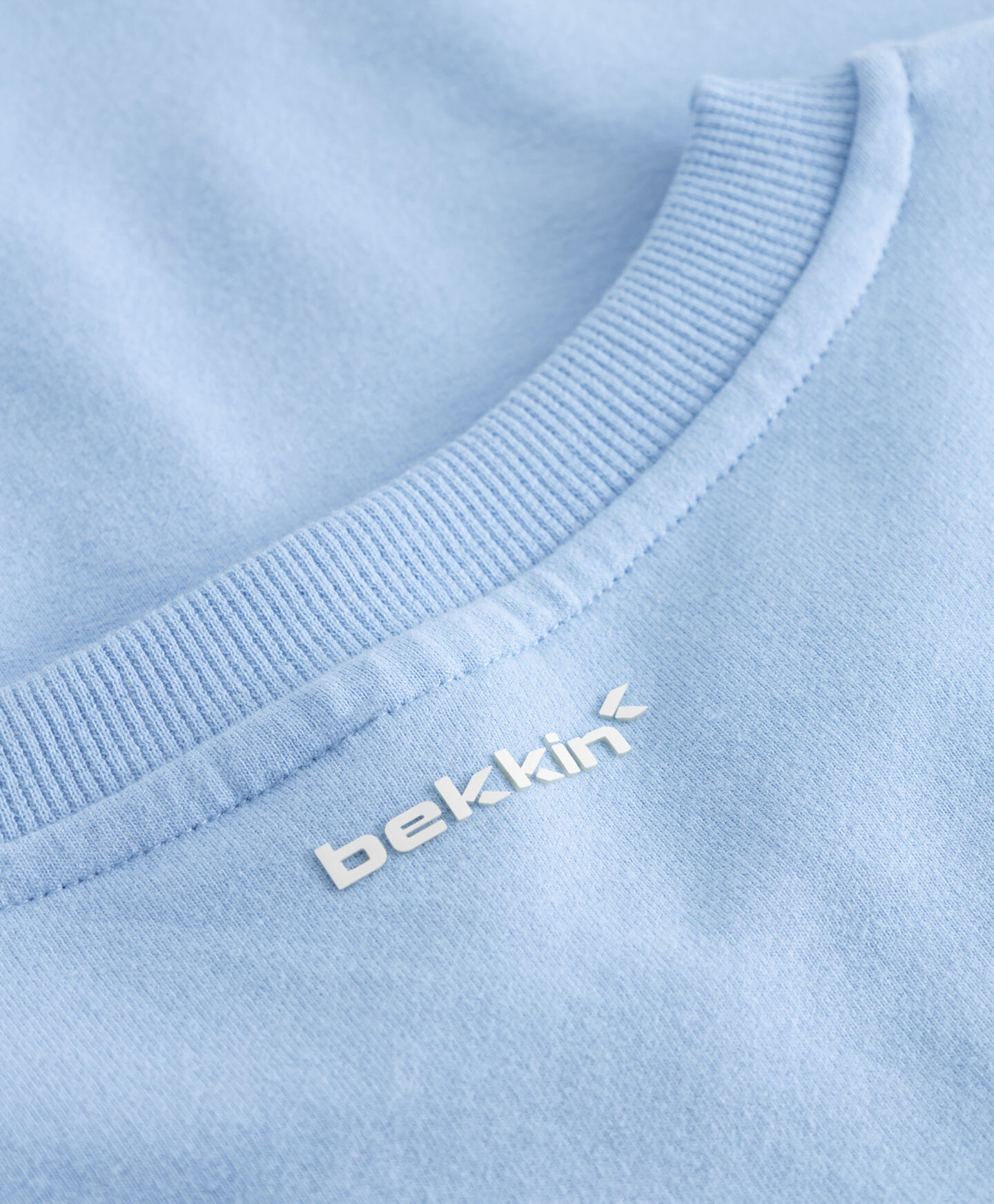 Plava majica kratkih rukava Bekkin za djevojčice savršena je za ležerne odjevne kombinacije. Opušten kroj pruža neograničenu slobodu kretanja, a široki rukavi majici daju moderan izgled. Visok udio pamuka jamči prozračnost pa je ova majica kratkih rukava idealna za svakodnevno nošenje i sve aktivnosti na otvorenom. Svestrana plava boja dobro pristaje uz razne odjevne kombinacije, od svakodnevnih do elegantnih. U ponudi potražite i kratke hlače koje savršeno pristaju uz majicu kratkih rukava.