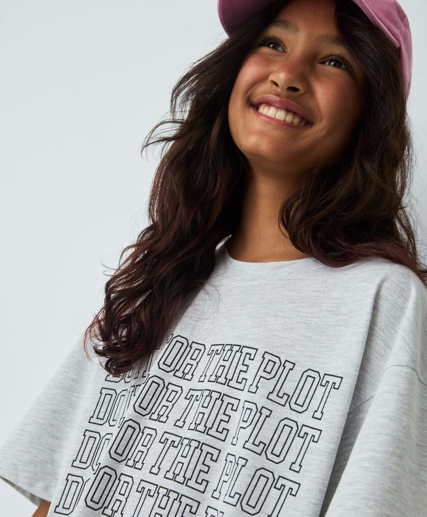 Majica kratkih rukava s otiskom od 100% pamuka za djevojčice obećava dan pun avantura! Klasičan kroj, kratki rukavi i nježan otisak na prsima čine je odličnim odabirom za svakodnevne odjevne kombinacije: za školu, šetnje i igru.