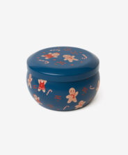 Mirisna svijeća u metalnoj posudi tamno plave boje unosi zimsku eleganciju u dom. Posuda ukrašena blagdanskim motivom privlači pažnju i čini svako uređenje posebnim. Plamen širi sjaj koji se harmonično isprepliće s aromom, stvarajući idealnu atmosferu za večernje opuštanje.