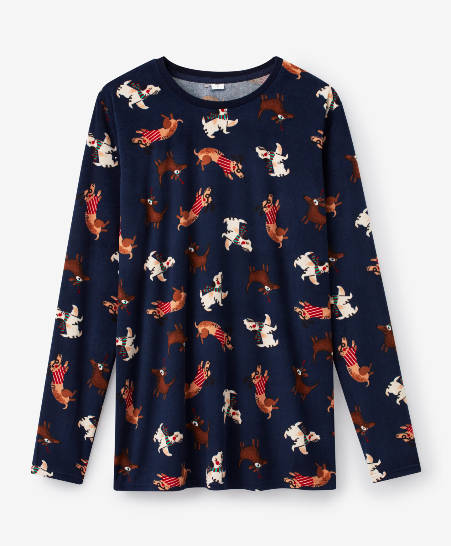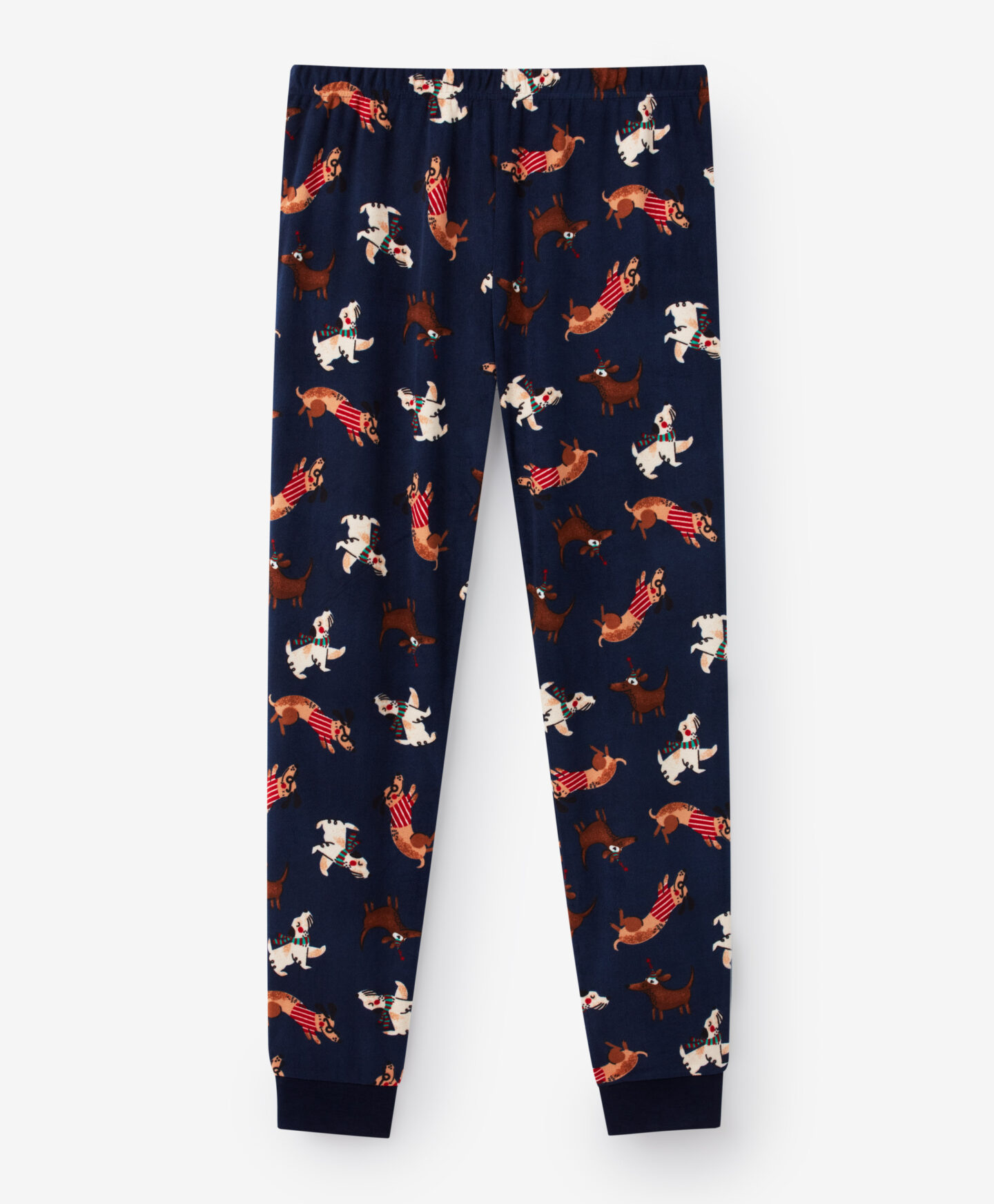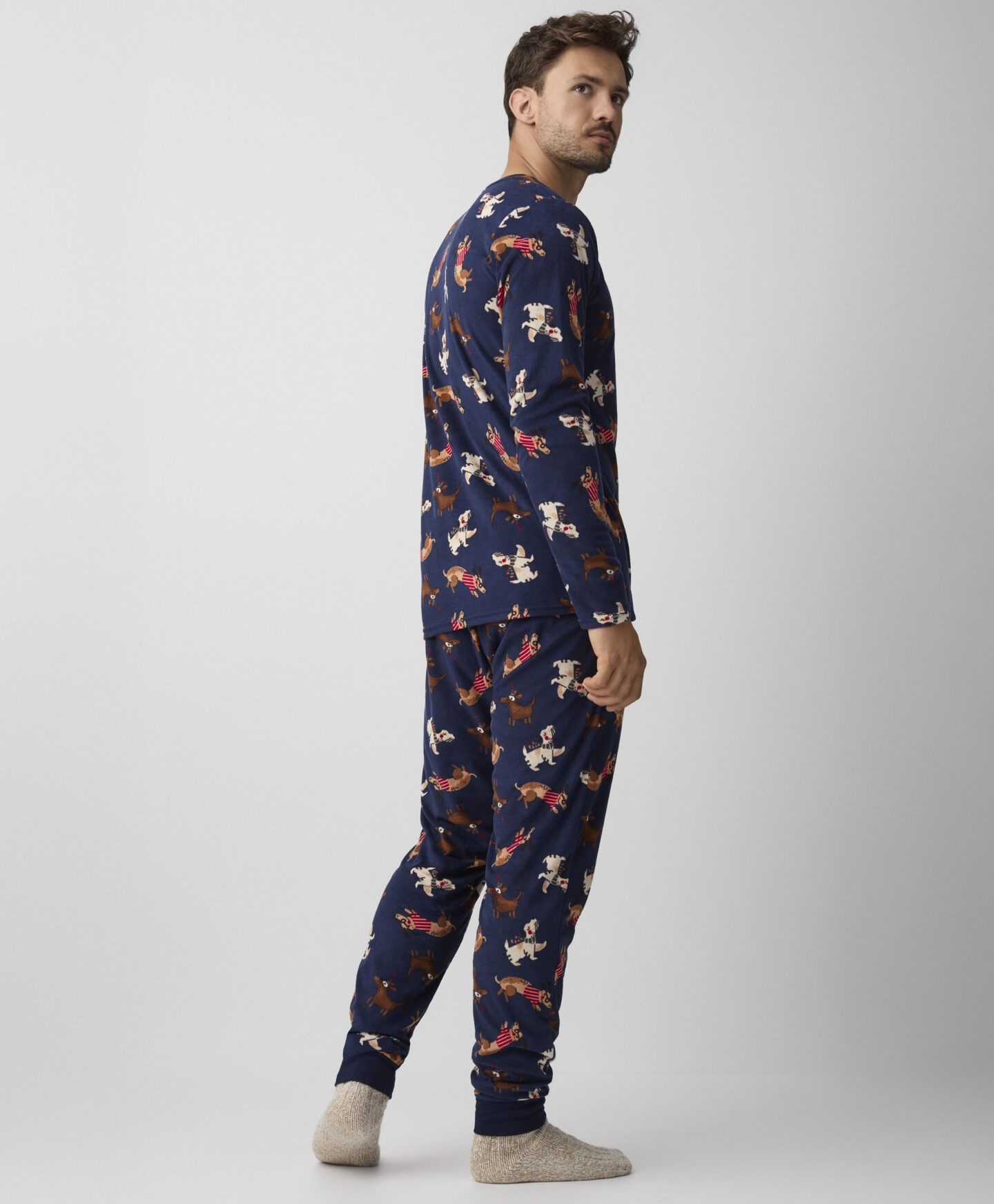 Muška pidžama od velura sa psima idealna je za hladnije dane. Napravljena je od mekanog velura koji je ugodan na dodir pa pruža toplinu i udobnost tijekom spavanja. Zbog razigranog motiva sa psima svi će je htjeti nositi prije spavanja. Idealna je za ljubitelje ovih četveronožnih prijatelja.
