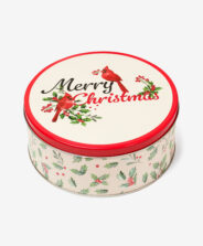 Okrugla limena kutija crvena klasičan je blagdanski dodatak. Ukrašena šarmantnim natpisom i zimskim motivima, ova posudica čini spremanje slatkiša ili orašastih plodova još ljepšim. Zahvaljujući bezvremenskom dizajnu može se lako uklopiti u tradicionalne i moderne interijere.