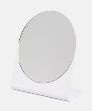 Okruglo bijelo ogledalo za kupaonicu bit će neizostavan dodatak za svakodnevne rituale ljepote, nanošenje šminke i stiliziranje frizure. Njegova čvrsta baza jamči jednostavnu upotrebu, a kompaktna veličina neće zauzeti puno mjesta na polici, komodi ili toaletnom stoliću. U ponudi su dostupne dvije boje.