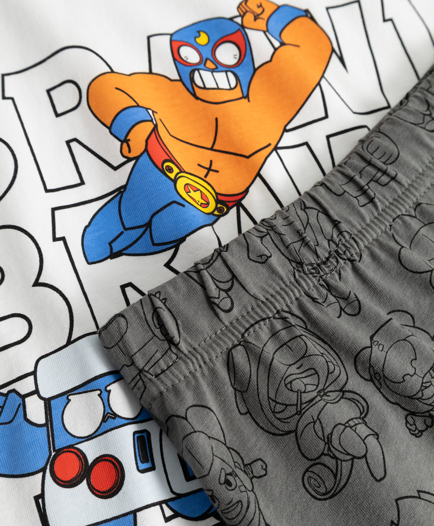 Pidžama Brawl Stars od 100% pamuka za dječake stvorena je za ljubitelje ove legendarne videoigre. Komplet se sastoji od majice kratkih rukava i kratkih hlača pa je odličan odabir za toplije noći. Materijal je mekan i nježno grli dijete tijekom spavanja, a klasičan kroj jamči potpunu slobodu kretanja. U ponudi potražite još pidžama u raznim motivima