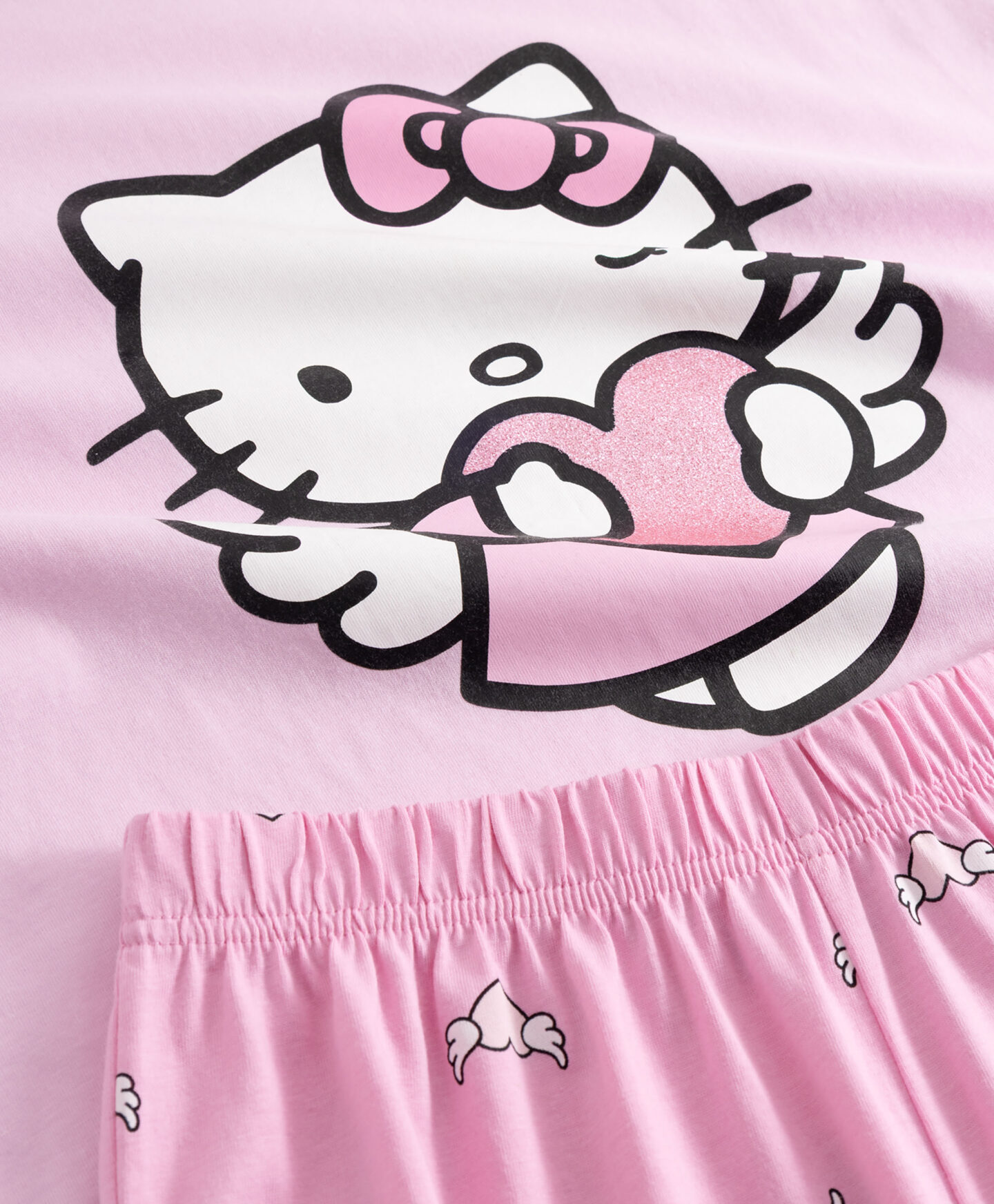 Pidžama Hello Kitty od 100% pamuka sastoji se od majice kratkih rukava i dugih hlača. Ležeran kroj nudi udobnost i slobodu kretanja, a jedinstven dizajn s omiljenim likom izmamit će osmijeh na lice svakoj obožavateljici Hello Kitty. Pidžama je prigodna i za zimu i za ljeto, a prozračan pamuk nježno grli dječju kožu.