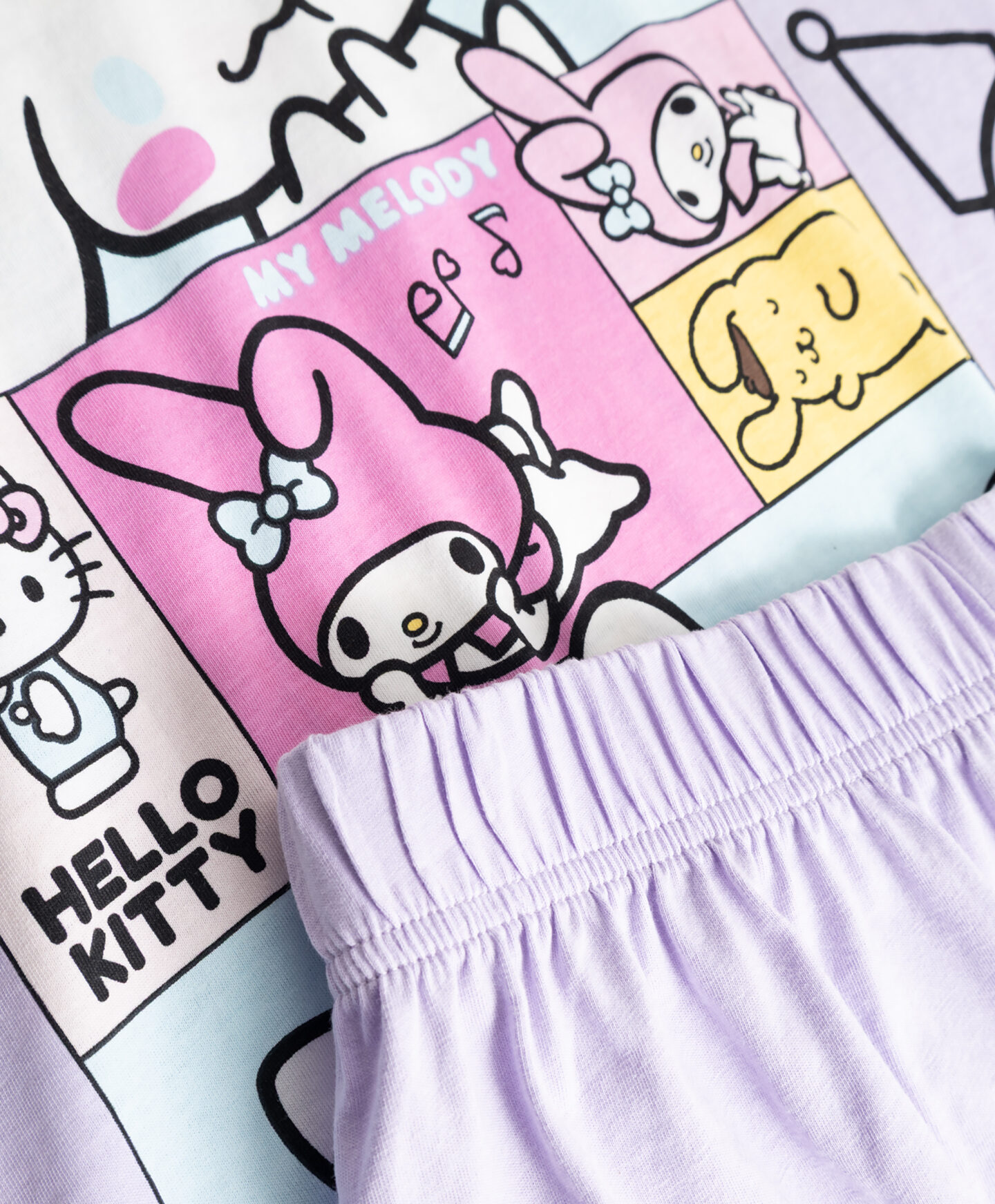 Pidžama Hello Kitty & Friends od 100% pamuka za djevojčice sastoji se od majice kratkih rukava i kratkih hlača. Odličan je odabir za toplije noći. Materijal je mekan i nježno grli dijete tijekom spavanja, a klasičan kroj jamči potpunu slobodu kretanja. U ponudi potražite još pidžama u raznim motivima