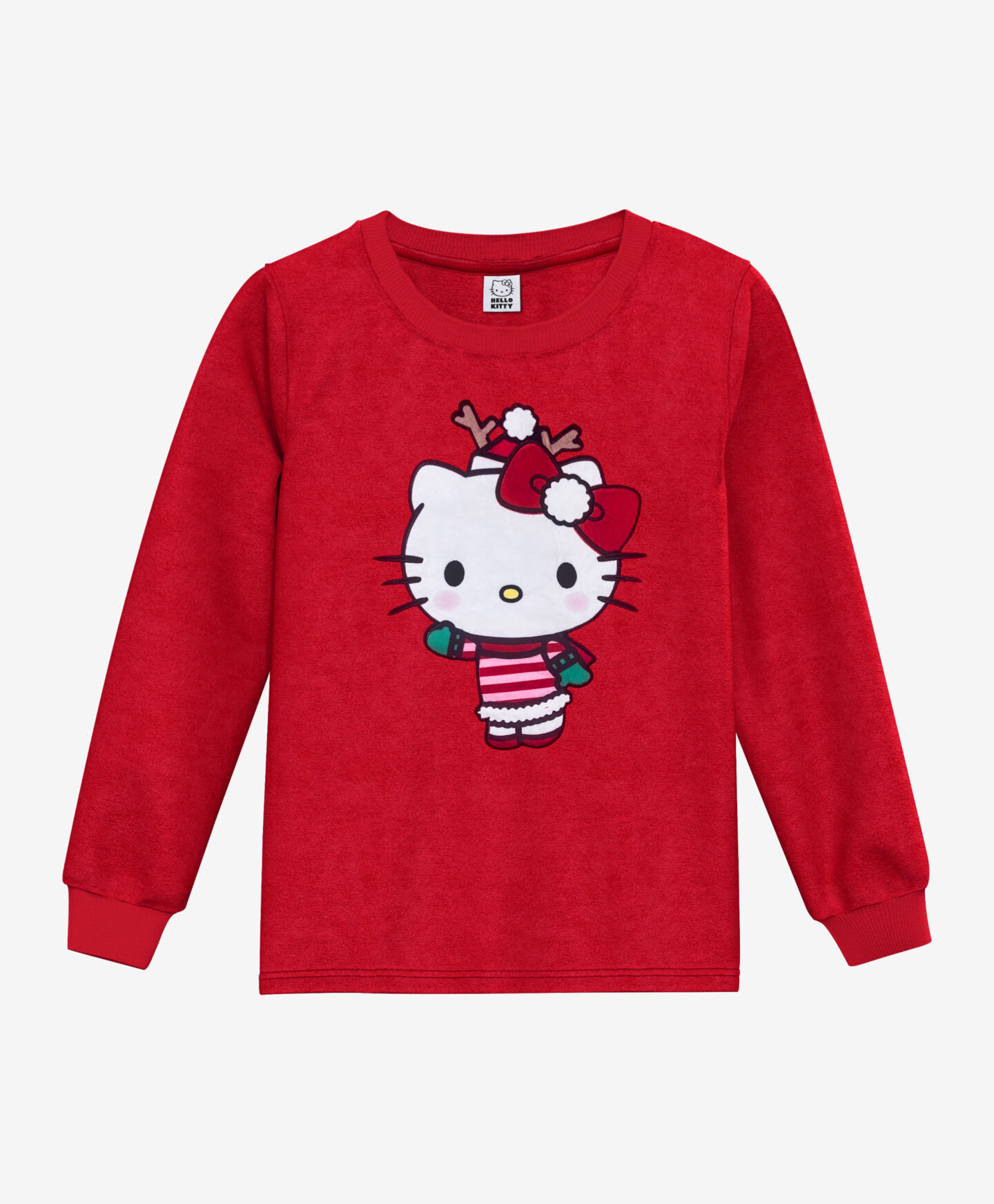 Pidžama po Hello Kitty licenci san je svake male obožavateljice ovog popularnog lika! Majica ukrašena blagdanskim motivom osigurat će udobnost vašeg djeteta dok spava. Donji dio pidžame s motivom poklona i Hello Kitty prozračan je i nježno grli kožu, što jamči slobodu kretanja i bezbrižan odmor vašeg djeteta.