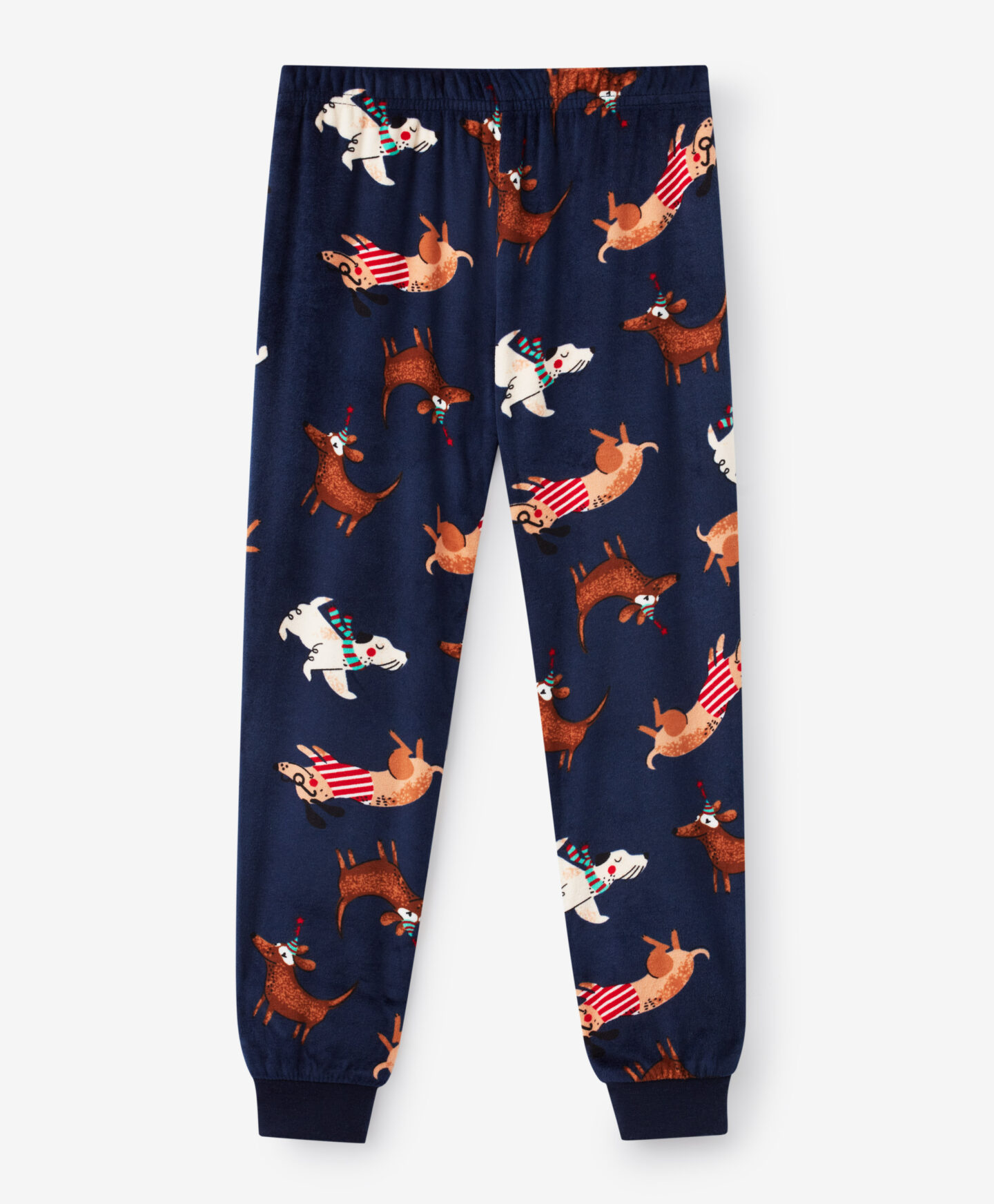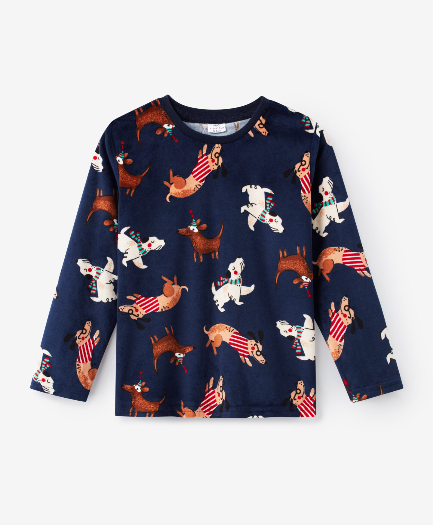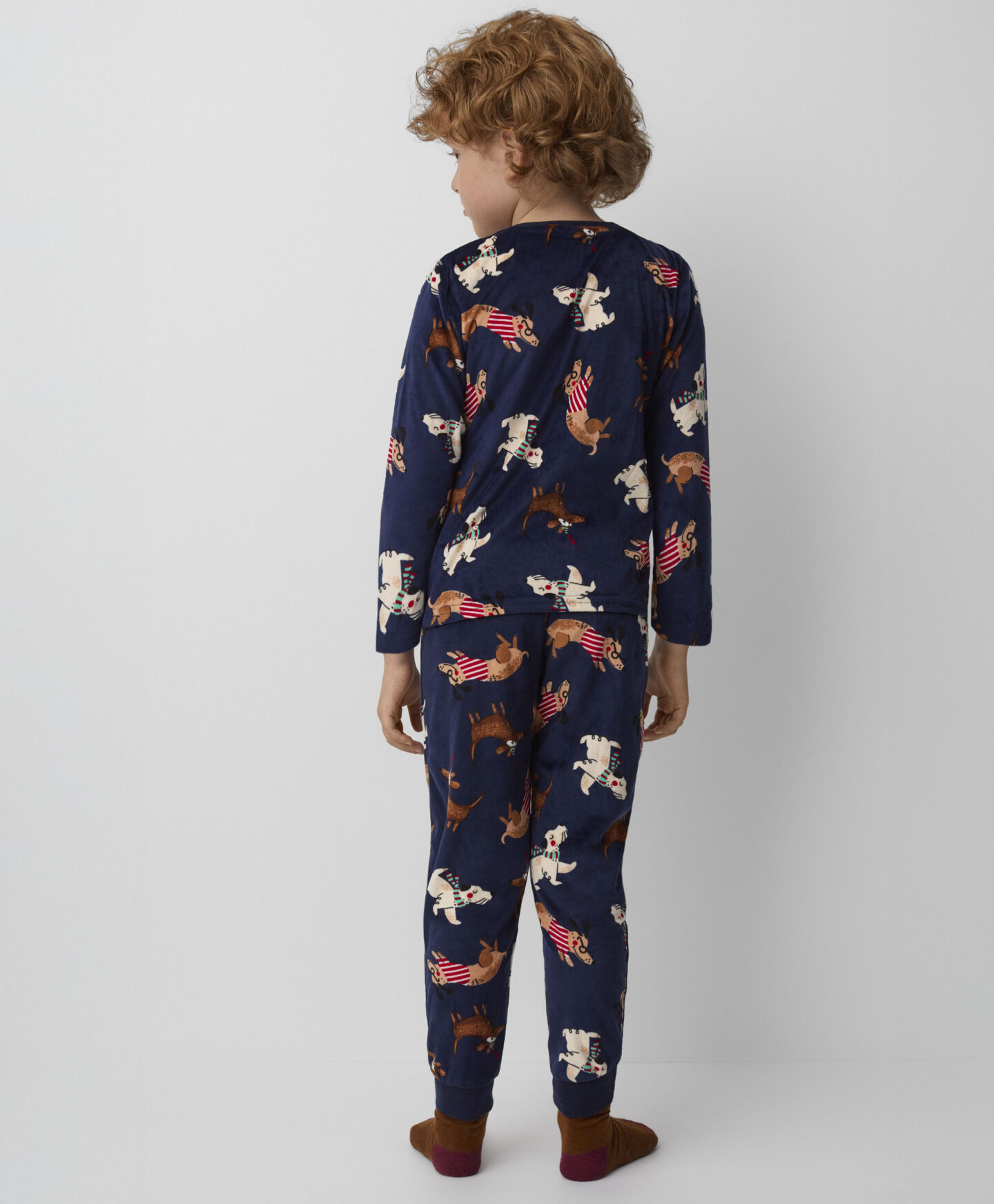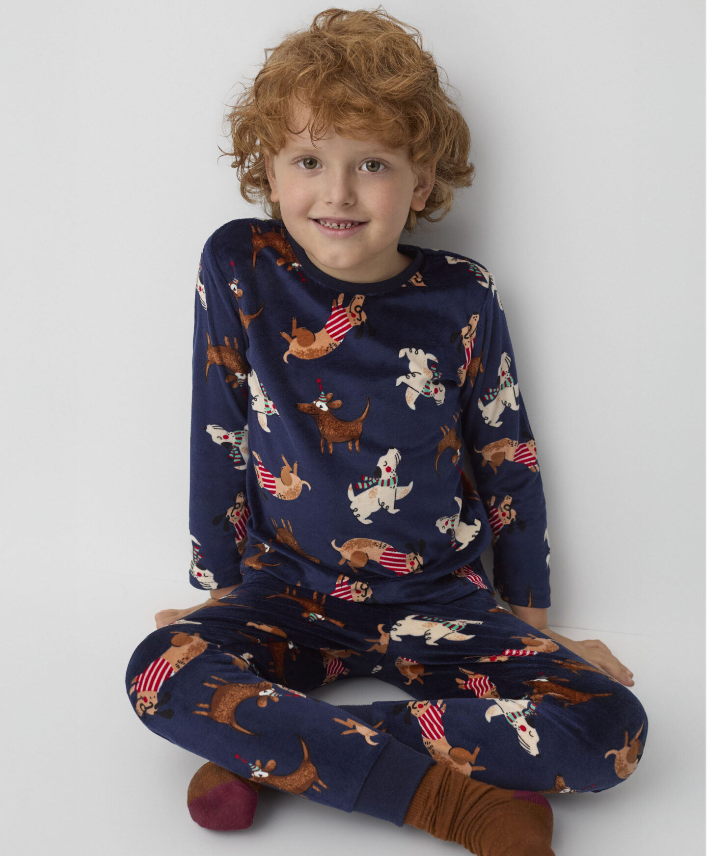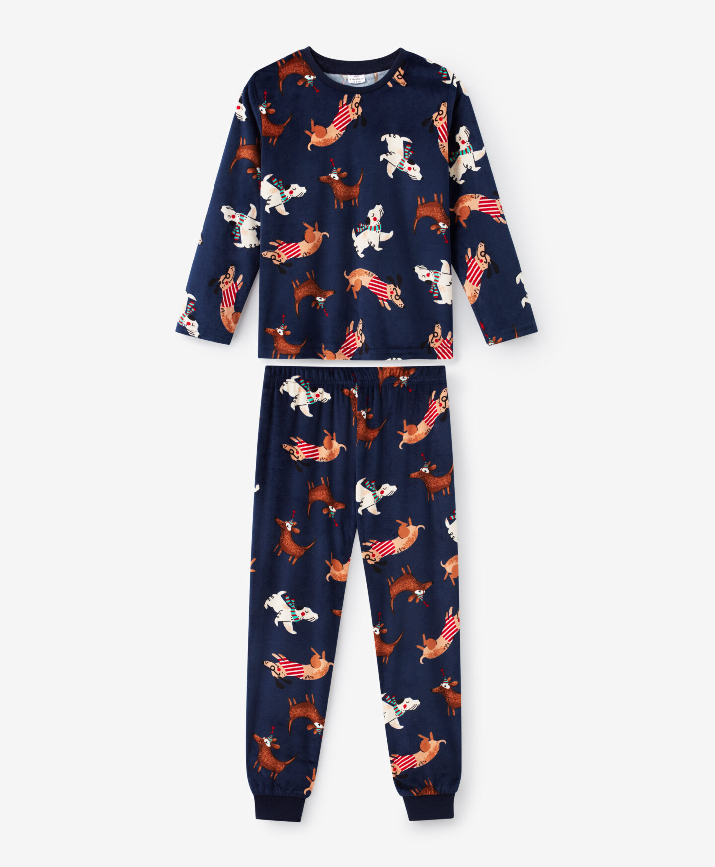 Pidžama od velura sa psima za dječake savršen je izbor za male ljubitelje ovih životinja. Izrađena je od mekanog velura koji je ugodan na dodir pa pruža udobnost i slobodu kretanja tijekom spavanja. Zbog razigranog motiva sa psima svaki će je dječak htjeti nositi prije spavanja. Idealna je za hladnije noći jer obavija vaše mališane toplinom.