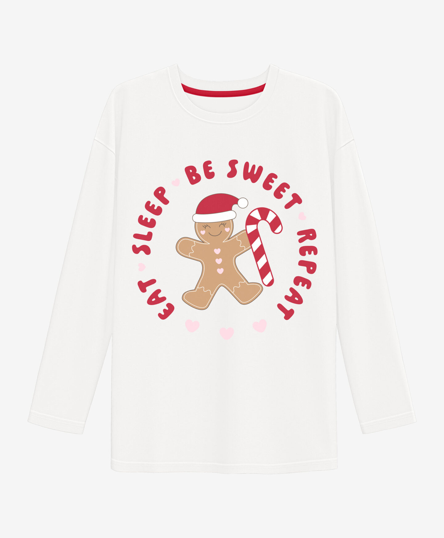 Pidžama od 100% pamuka s motivom medenjaka za djevojčice odličan je izbor za zimske večeri. Komplet se sastoji od majice dugih rukava i hlača koji osiguravaju udobnost i toplinu tijekom spavanja. Mekani pamuk nježan je prema dječjoj koži, a božićni motiv s medenjakom na prsima dodaje dašak neodoljivosti svakom trenutku i stvara veselu atmosferu u domu.