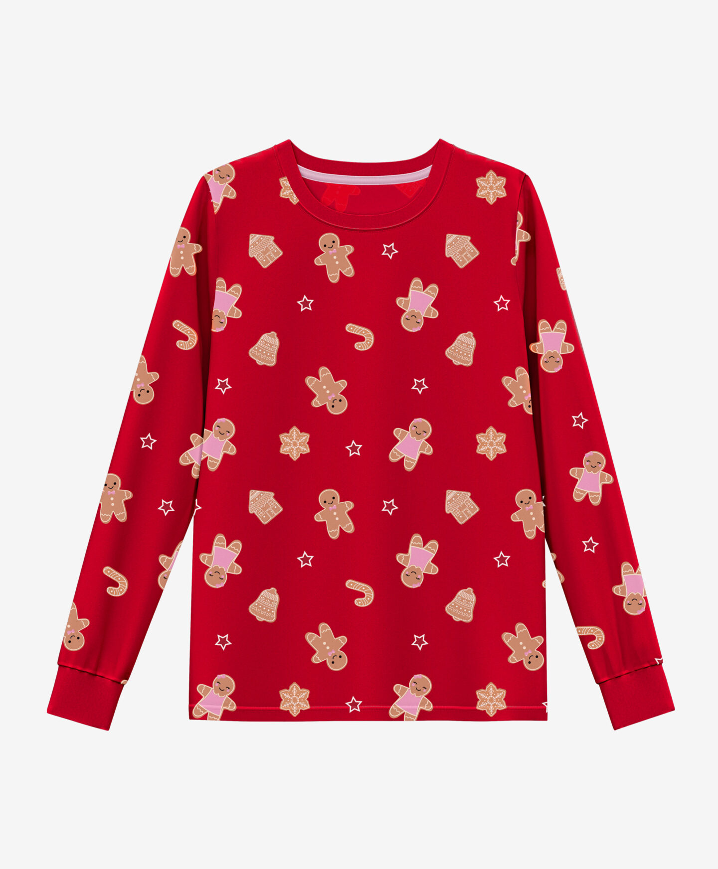 Pidžama od 100% pamuka s motivom medenjaka za djevojčice sastoji se od majice dugih rukava i hlača, što ju čini savršenom za hladne noći. Mekani i prozračni pamuk osigurava udobnost i toplinu te stvara blagdansku atmosferu.