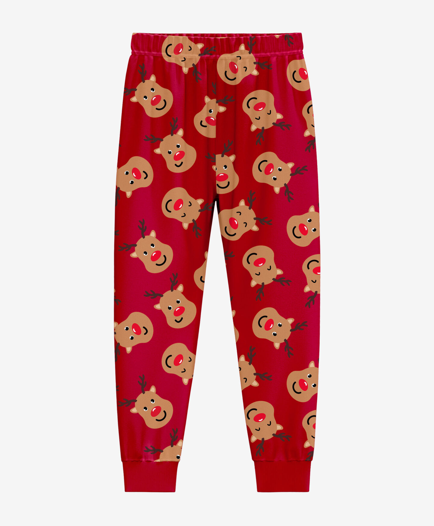 Pidžama sa sobovima za dječake izrađena od 100% pamuka sastoji se od majice dugih rukava i hlača, što ju čini savršenom za hladne noći. Mekani i prozračni pamuk osigurava udobnost i toplinu tijekom sna, a blagdanski dizajn donosi veselu atmosferu u dom.